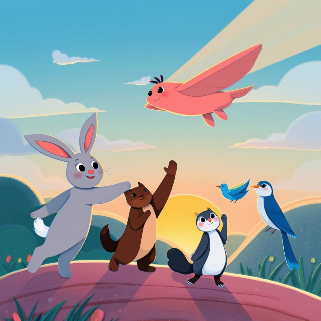 As the day ended, all the animals realized Marvin was kind and fun. 'You're not like other mosquitos!' said Ruby. 'I guess... you're Marvin the Friend instead!'