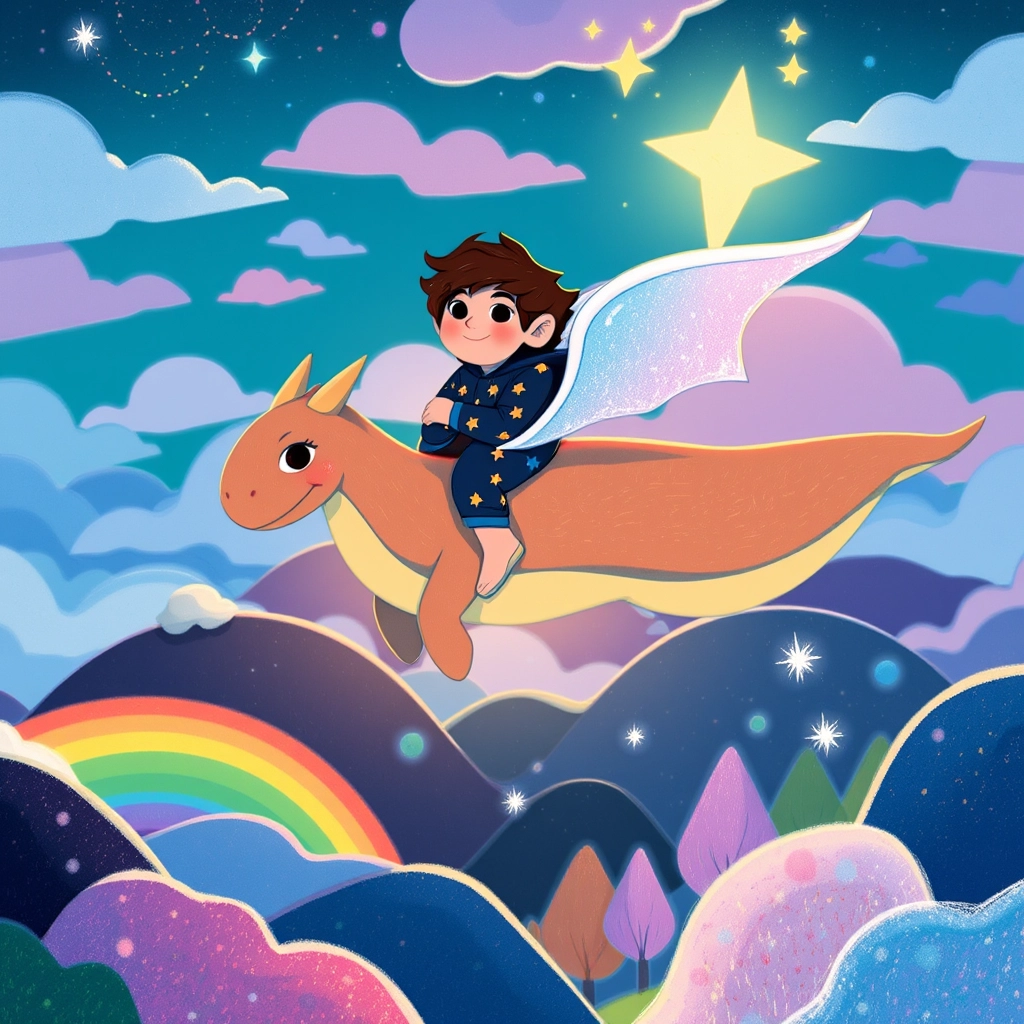 'Where are we going?' [Max](XWK9KCLT) asked. [Sparkle](BNM3LH4M) grinned and replied, 'To the Rainbow Forest, where the colors bring wishes to life!' They soared over clouds of candy cotton.
