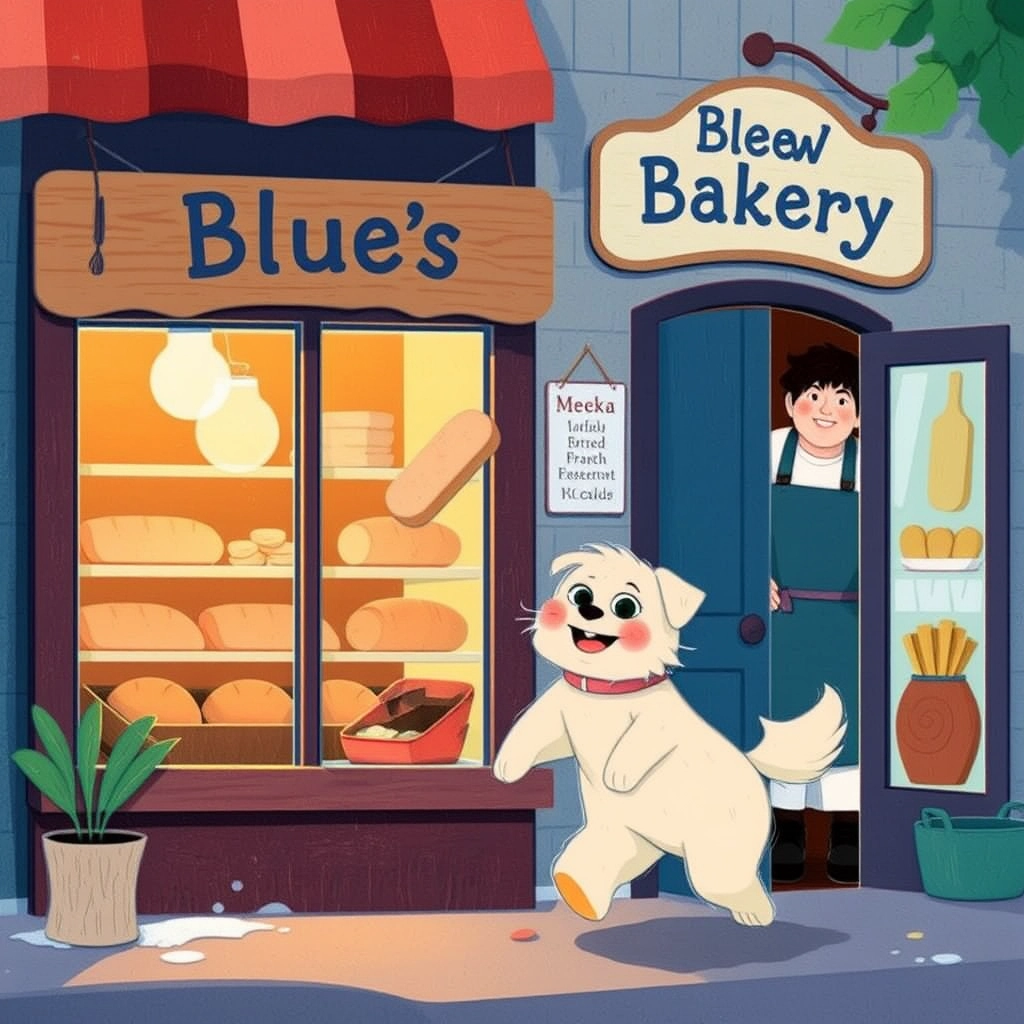 Then came Mr. Blue’s bakery, with warm smells of freshly baked bread. The baker chuckled as [Meeka](LC2MHCTH) paused to take a sniff. ‘[Meeka](LC2MHCTH), you’ve got a nose for the best aromas!’ he said, tossing a teeny, tiny biscuit especially for him.