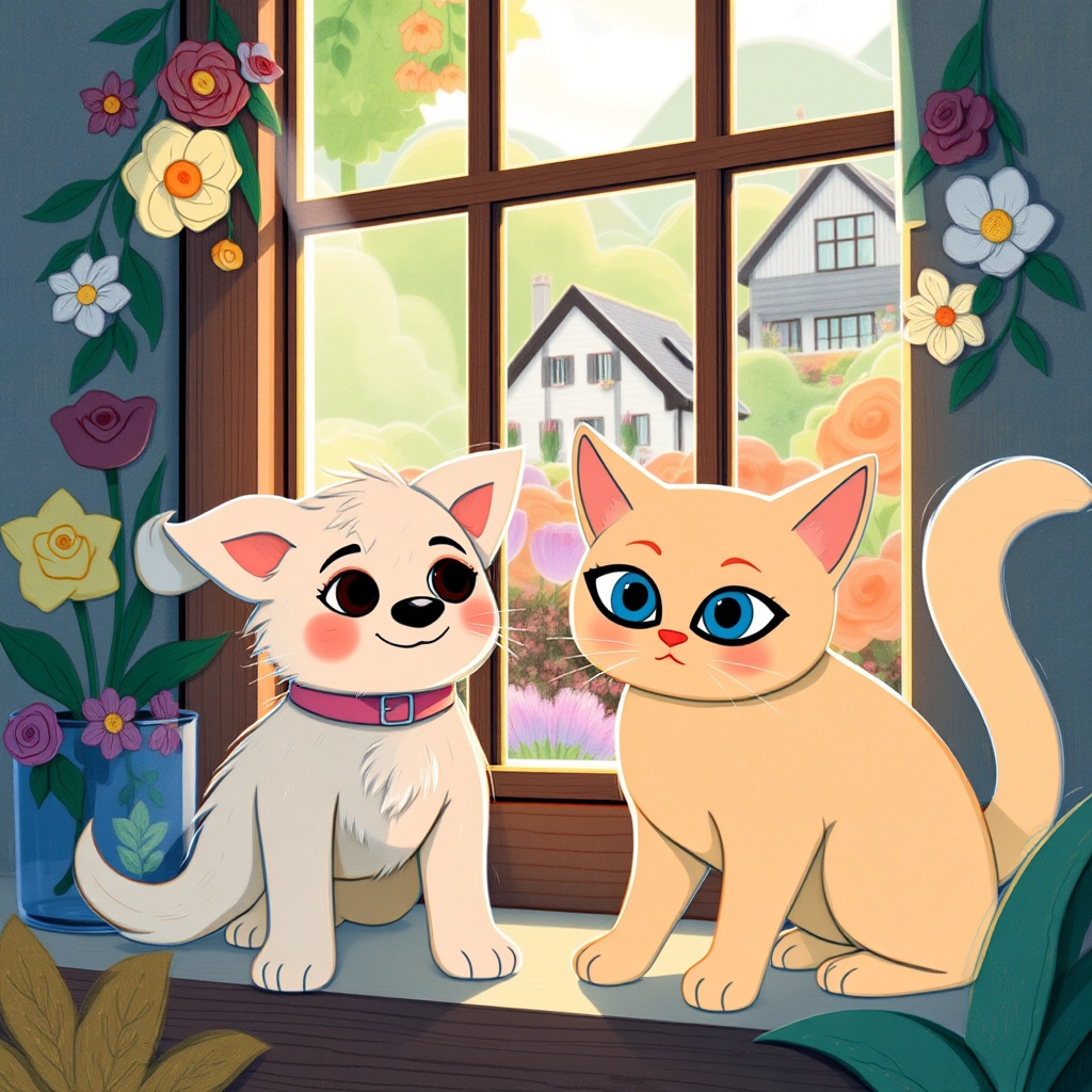 Further down, [Meeka](LC2MHCTH) greeted his best friend, [Milo](954SDVZK) the Siamese cat. [Milo](954SDVZK), with his sleek golden fur and twinkling blue eyes, sat lazily on a windowsill. ‘Trying to win over the town again, [Meeka](LC2MHCTH)?’ [Milo](954SDVZK) purred teasingly. [Meeka](LC2MHCTH) barked in playful response.