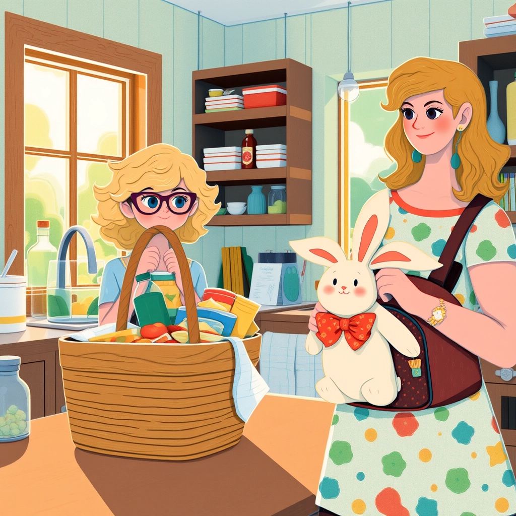 [Megan](D5DGHW6Z) was a cheerful little girl with blond curly hair and glasses. She loved adventures and decided to have a seaside picnic with her mum. They packed a picnic basket full of sandwiches, drinks, sausage rolls, and little treats. [Megan](D5DGHW6Z) wanted to take her favorite toy, Mr. Bunny, despite her mum's fears that it could get lost. [Megan](D5DGHW6Z) sneakily hid her bunny in her backpack!