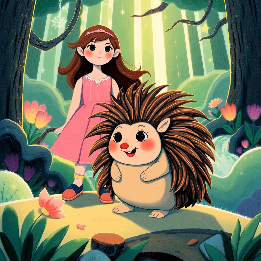 Глубже в лесу, она встретила забавного ежика с очень длинными иголками. [Ежик](LFCDRTPF) котился как мячик и остановился прямо возле её ножек.