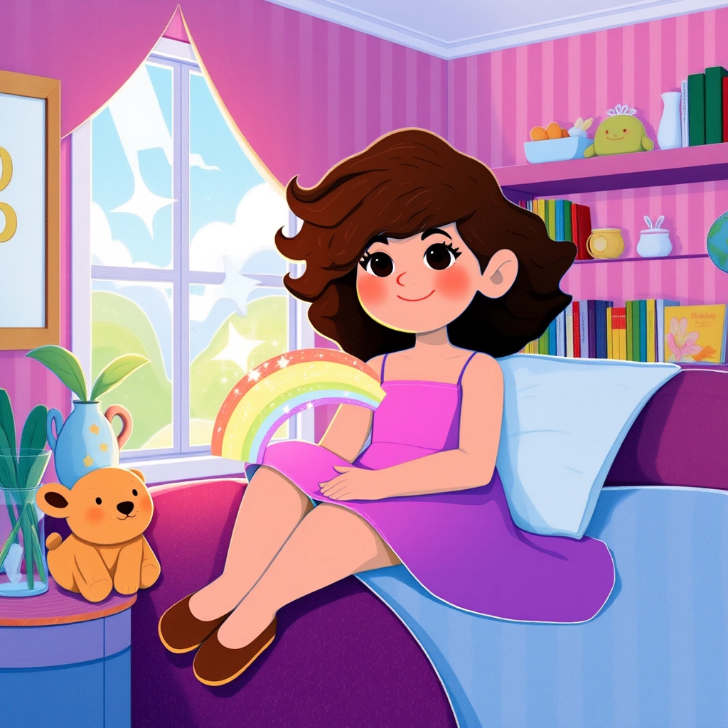 One sunny morning, [Michelyn](V75HP5TB) woke up to a sparkling map on her pillow. It shimmered with rainbow colors, leading to a magical place called Rainbow Island. Excited, she packed her bag with her teddy, a snack, and her lucky sun hat and set off for a big adventure!