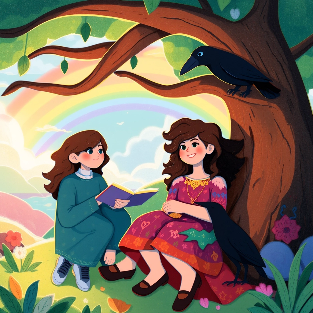 [Michelyn](V75HP5TB) and her friends made Rainbow Island the happiest place in the world. As they flopped on the grass, the crow joined them, and they all gazed at the biggest, brightest rainbow. 'This is the best adventure ever!' [Michelyn](V75HP5TB) said.