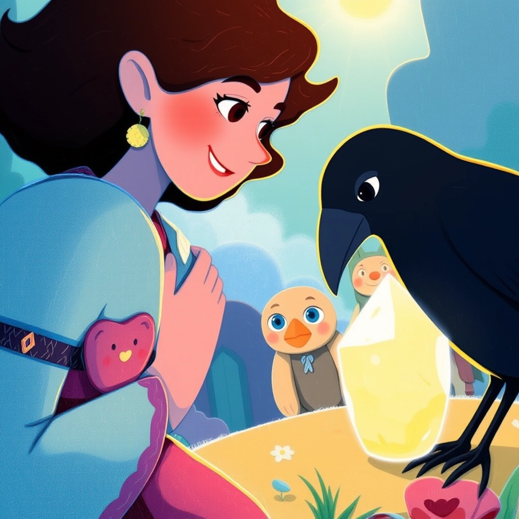 When [Michelyn](V75HP5TB) asked why he took the crystal, the crow sadly said, 'I was lonely and wanted the light to keep me company.' [Michelyn](V75HP5TB) smiled and said, 'You don’t need the crystal. You can have us as friends instead!'