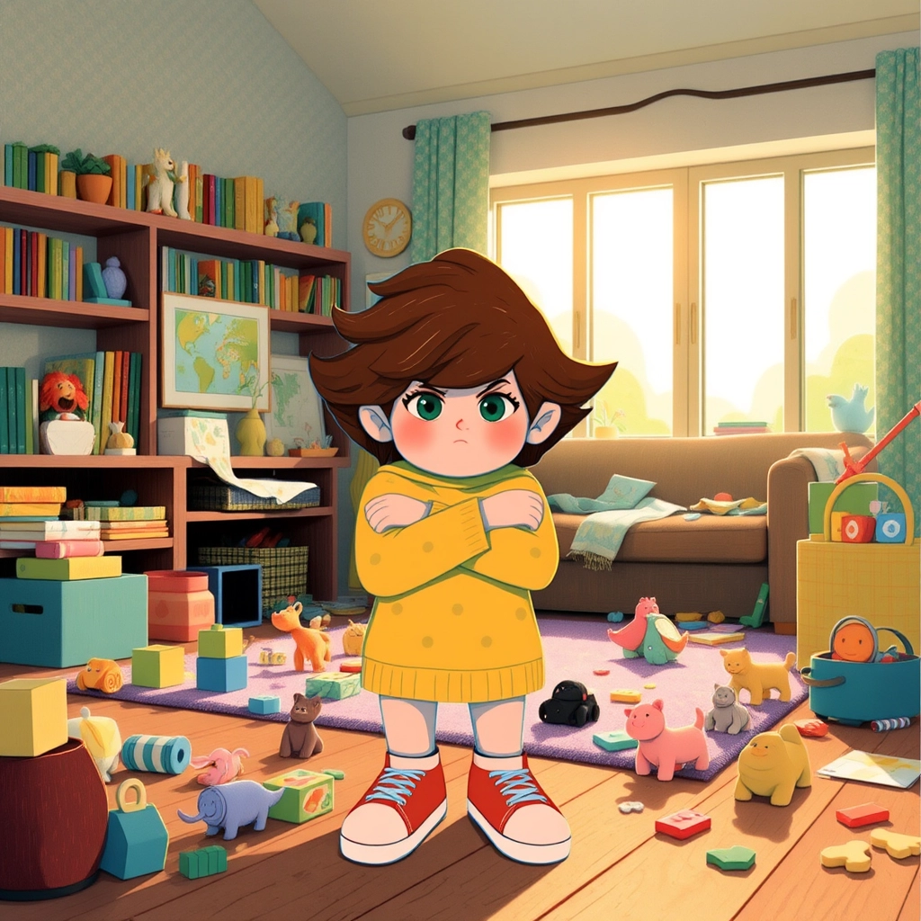 Once upon a time, there was a four-year-old girl named [Molly](H43S5C77). [Molly](H43S5C77) had the wildest curly brown hair, bright green eyes, and loved her yellow polka-dotted jumper. But today, [Molly](H43S5C77) was feeling very, VERY mad. She stomped her feet and crossed her arms, because she had been told to clean up her toys, and she did NOT want to.