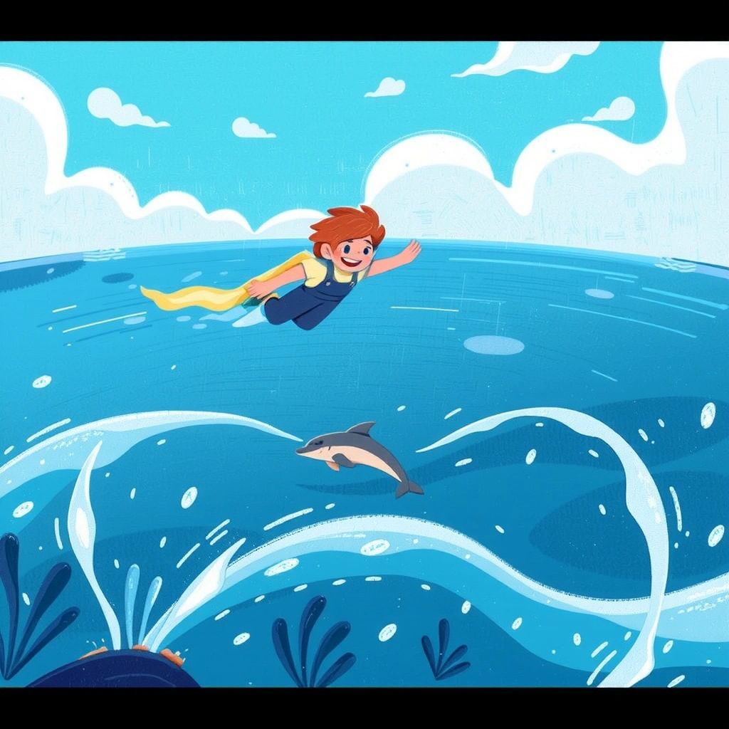 Across the vast Pacific Ocean, [Muz](Y45K5HDB) zoomed, spotting dolphins playing in the blue waves below. The freedom of the open sky filled him with pure joy.