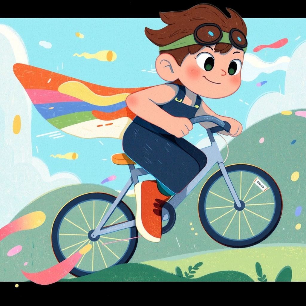 [Muz](Y45K5HDB) dreamed of flying bicycles in the sky, of lands yet to discover and things yet to try. The world was big, his dreams even bigger, and tomorrow promised another high-flying adventure.