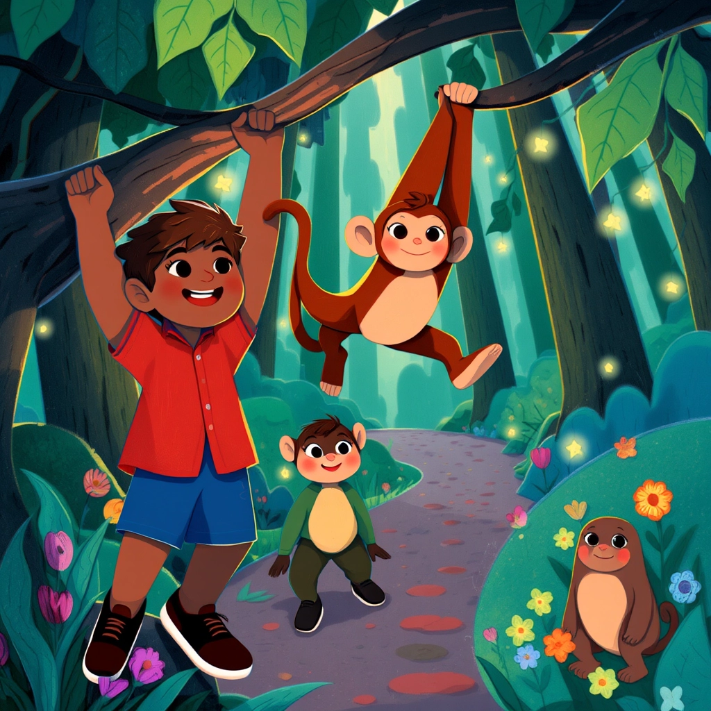 On their way, they met [Chezi](3LZDBS7X) the clever monkey, who offered to help. [Chezi](3LZDBS7X) had a round face, soft brown fur, and clever eyes.