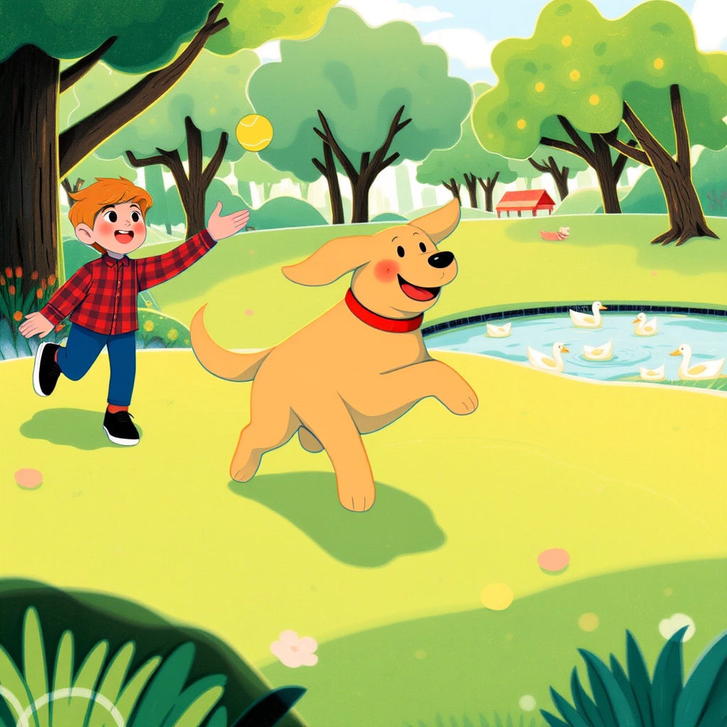 Sometimes, we end up in the park, where [Milo](XYMJWPQS) loves to play fetch. He runs so fast, his ears flap in the wind like he's flying!