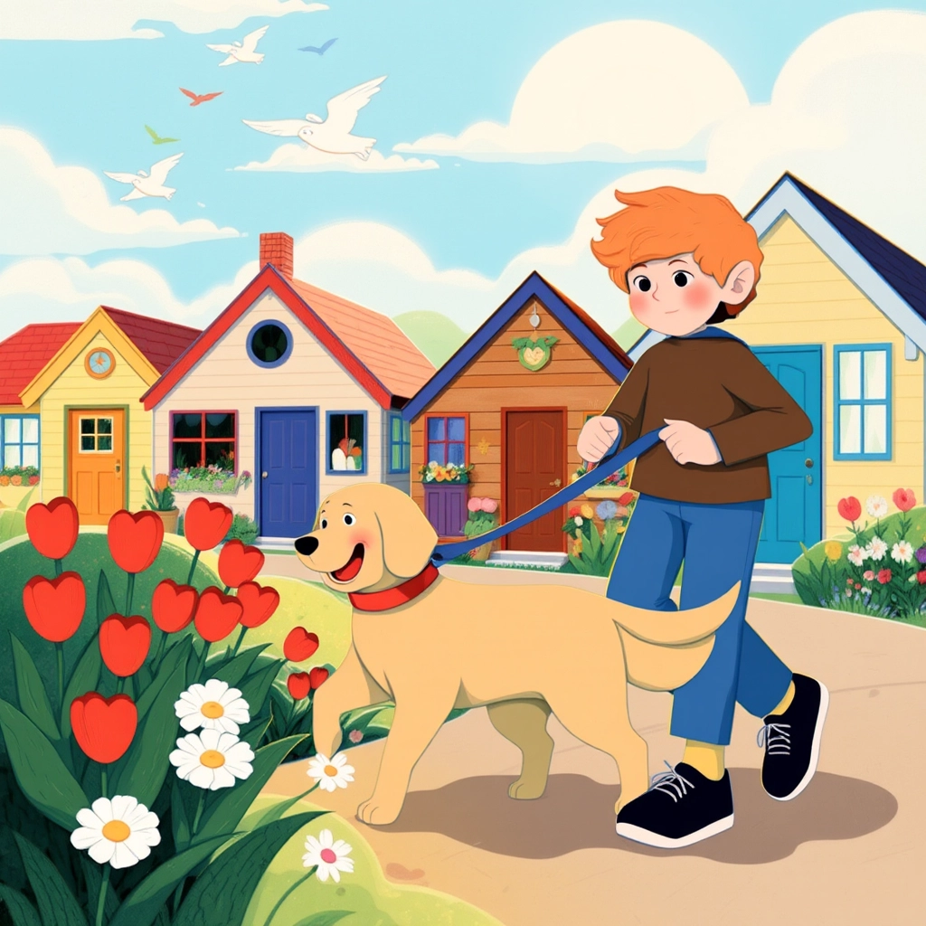 Every morning, [Milo](XYMJWPQS) and I go on adventures together. We start by walking around our neighborhood. [Milo](XYMJWPQS) loves to sniff the flowers and greet our neighbors!