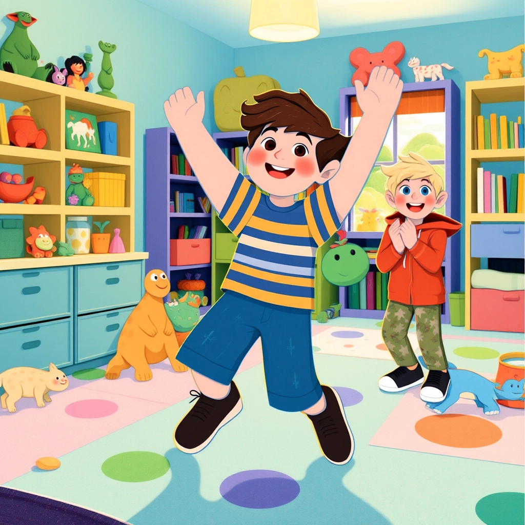 Sometimes, [Sam](2YB5L4Q4) gets super excited, like when he sees his favorite toy or hears his favorite song. When he’s happy, it’s like his joy fills the whole room!