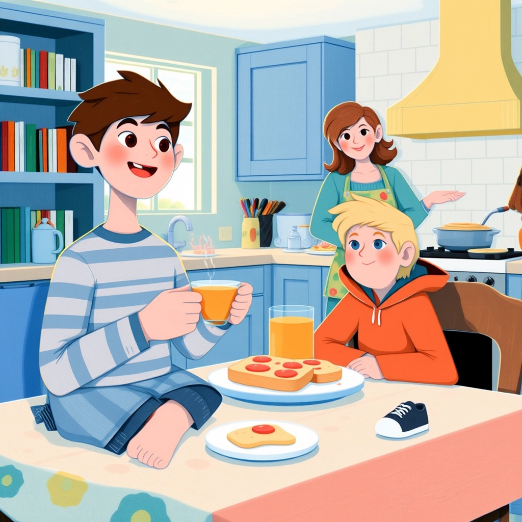 I’ve learned that [Sam](2YB5L4Q4) loves routines, like having strawberry jam on toast every morning and reading his blue rocket book before bed.
