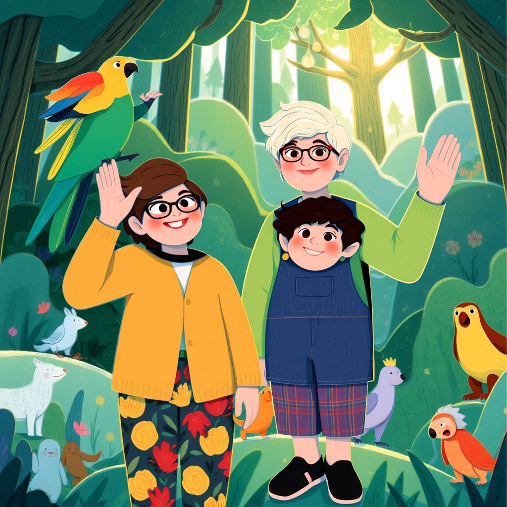 Through the forest, they met a funny parrot who squawked, 'Watch out for the Giggle River!' Nana and her grandson laughed. 'What is the Giggle River?' they asked.