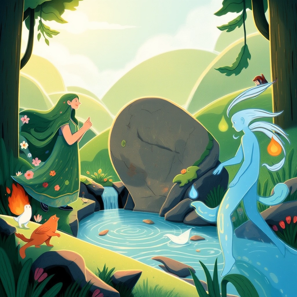 One day, across the forest, discord began. The elements failed to listen to each other, causing storms, floods, and wildfires.