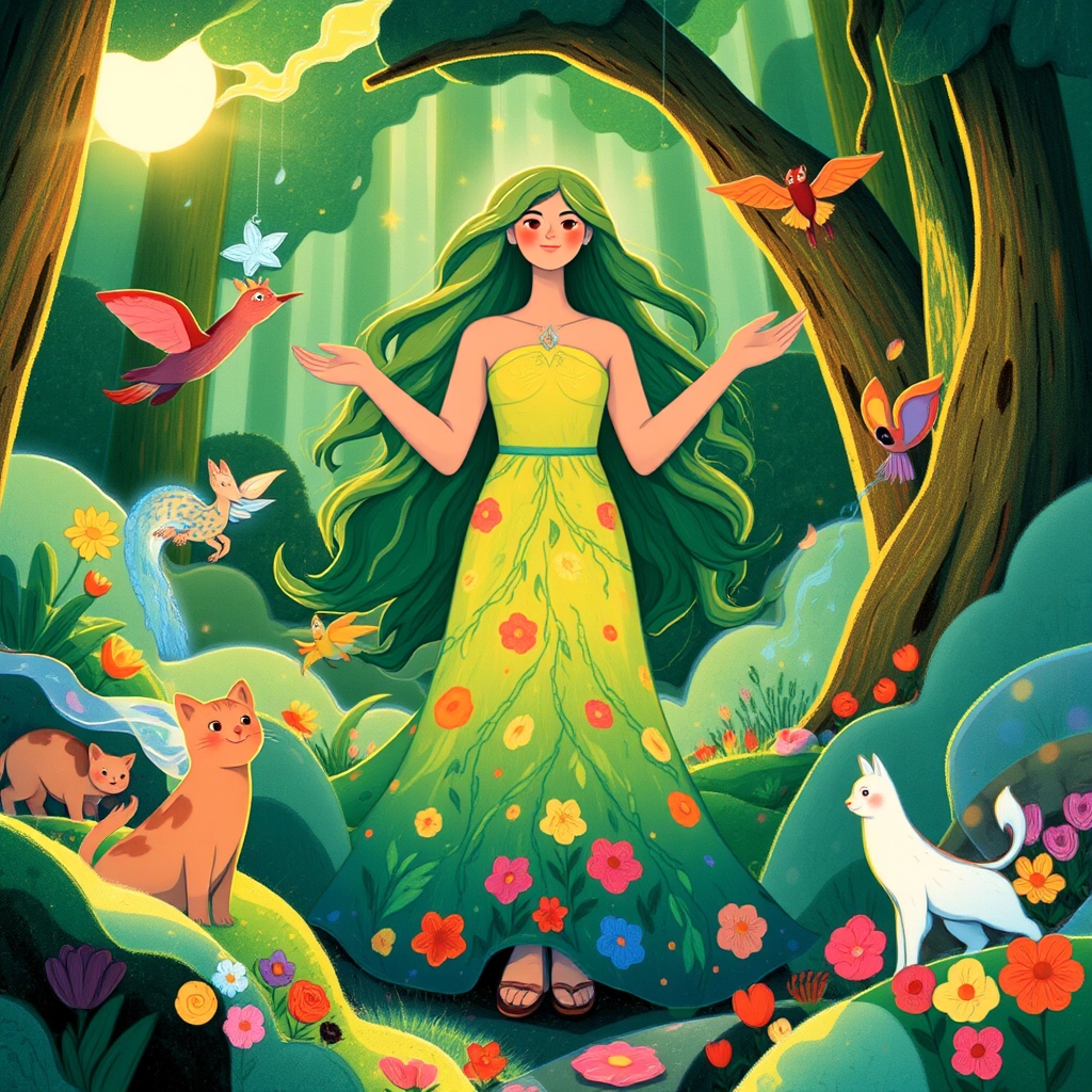 In the heart of an ancient forest, where the trees whispered secrets and flowers danced to the wind, lived [Earth Mother Sophia](ZKJRLBF3)—kind and wise. Her music kept nature in perfect harmony.