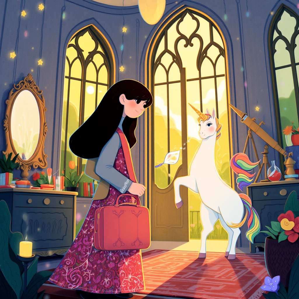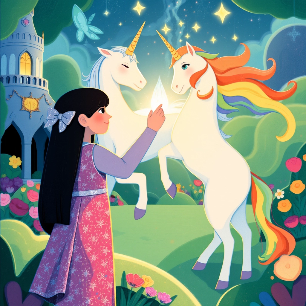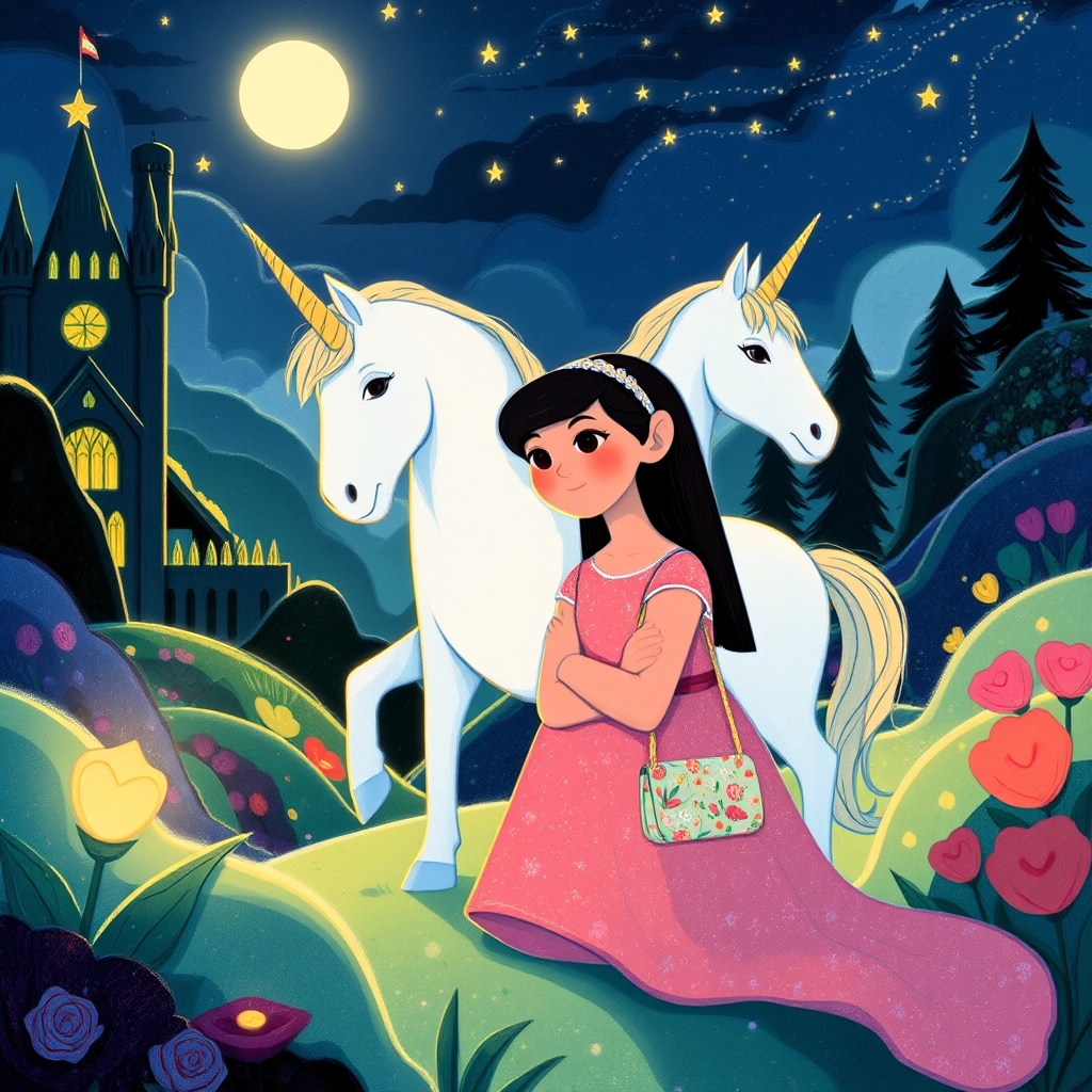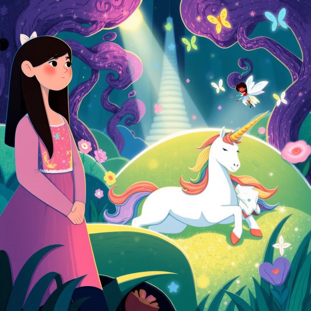 [Nina](G9D2DG2N) was a brave princess with a heart full of magic and kindness. But today, her sparkly kingdom felt sad because her best friend, her magical unicorn [Luna](ZVDZTC22), had fallen ill. [Luna](ZVDZTC22)'s golden horn, which always shimmered with light, was dim, and her usually vibrant rainbow mane looked pale.