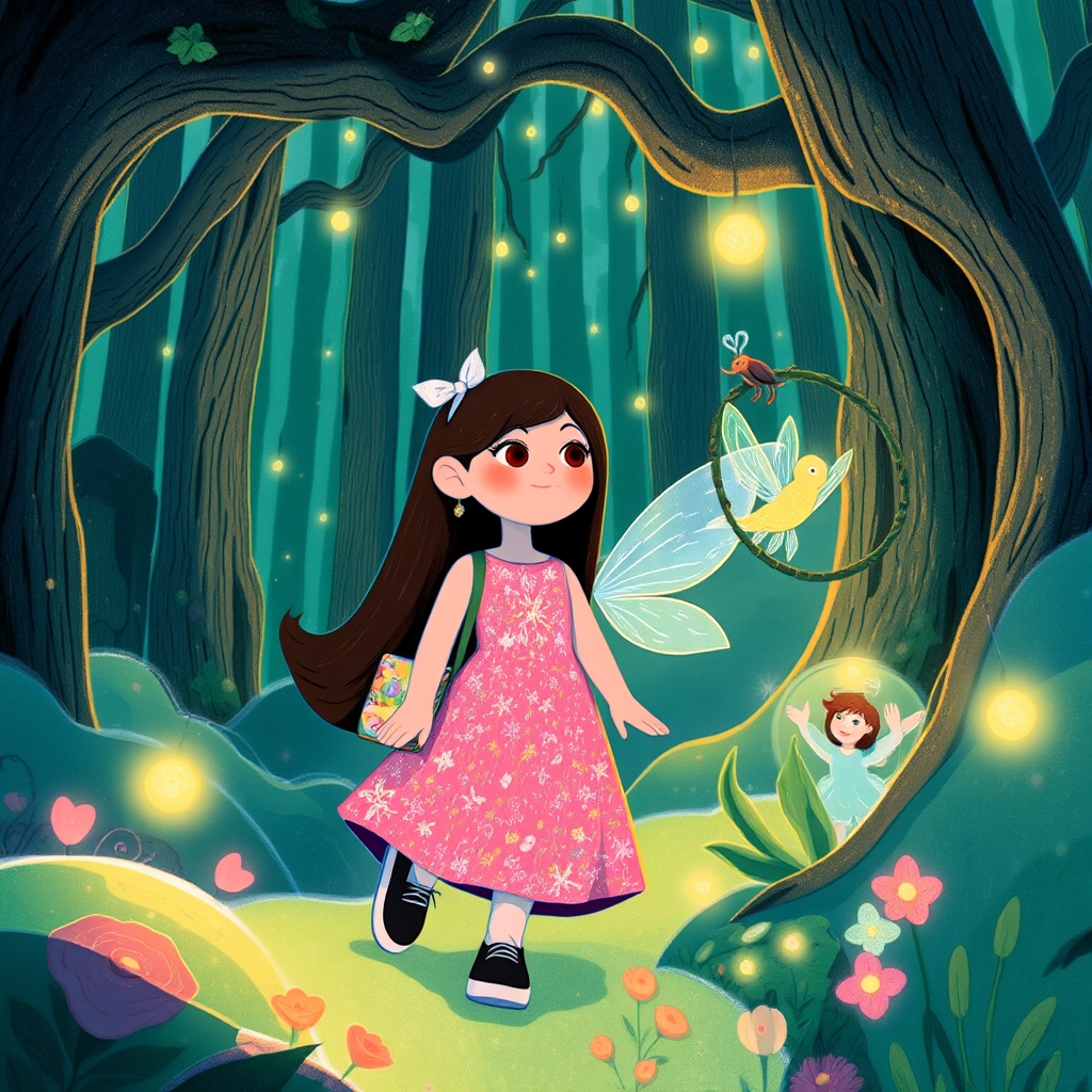 [Nina](G9D2DG2N) journeyed into the Glow Forest, where the trees seemed alive, and the air shimmered with tiny floating lights. Suddenly, [Nina](G9D2DG2N) heard a soft sobbing. It was a fairy stuck in a thorny bush. 'Can you help me, princess?' the fairy asked.