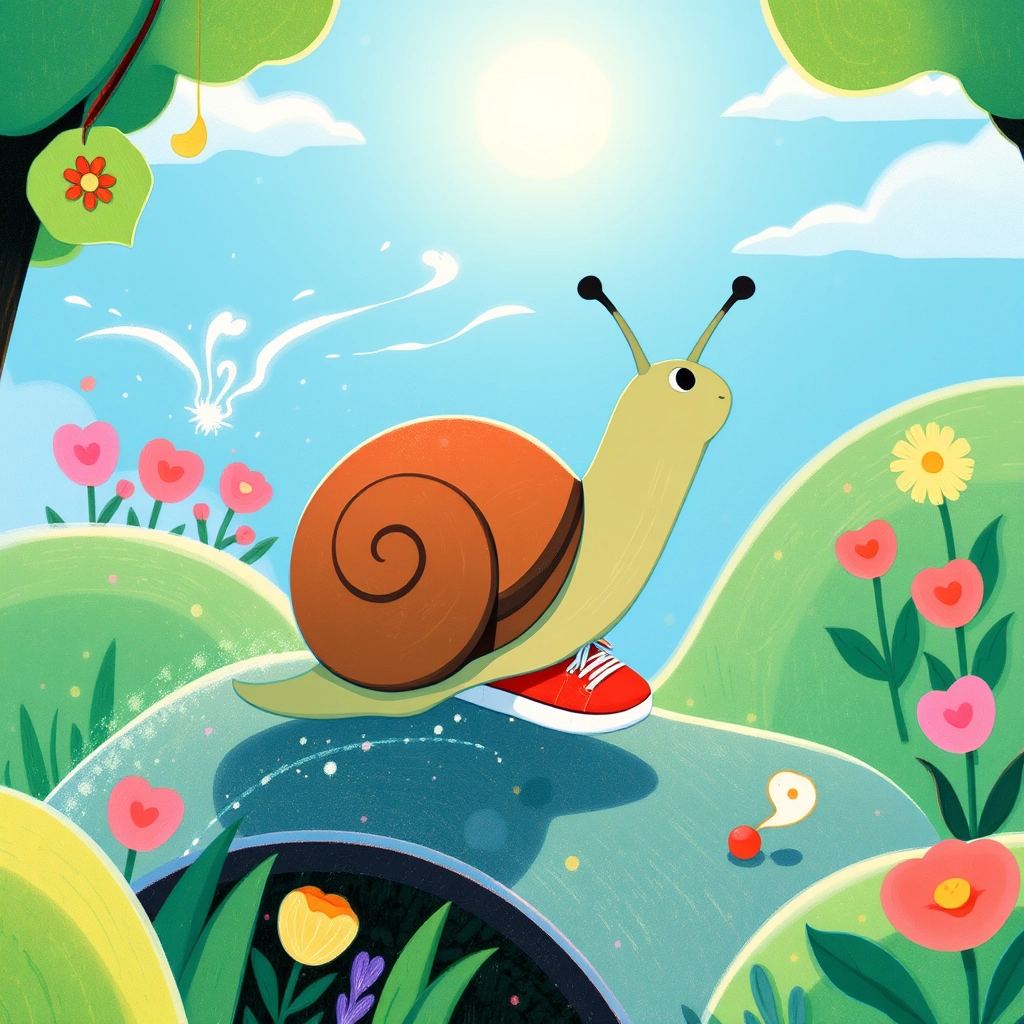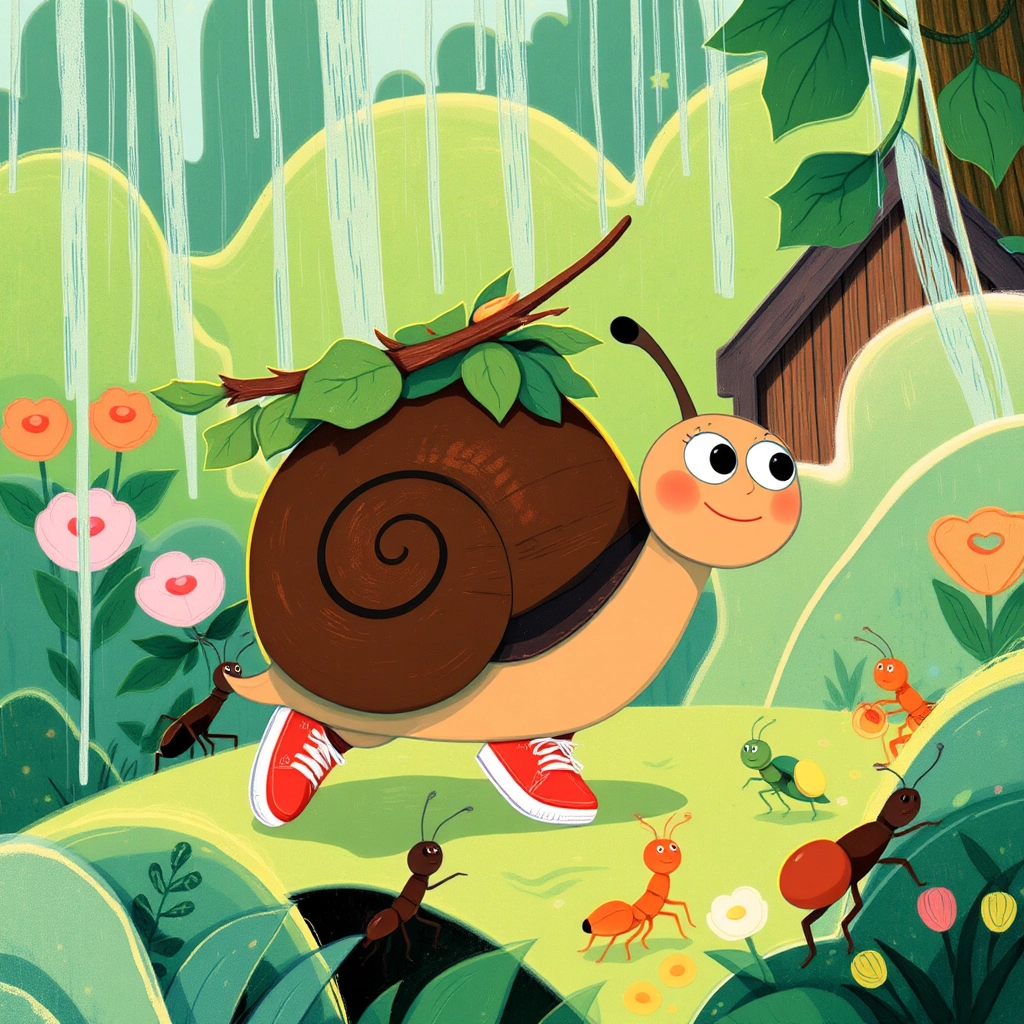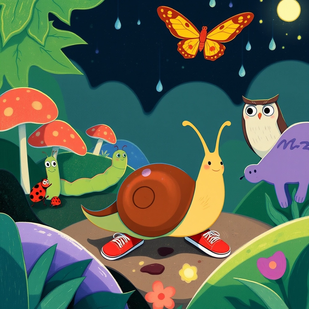 Once upon a slimy time, in the garden of Tickleberry Lane, lived a little snail named [Nino](6HPTMBDL). But [Nino](6HPTMBDL) wasn’t just any snail—he wore shiny red sneakers on his tiny foot-nubs!