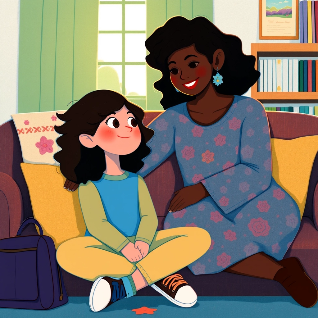 [Mom](4B7RRXS4) hugged [Riley](2NBFHWSL) and said, 'School is important, but weekends are for us! I have a surprise planned! Now let’s talk about exciting things to do this Saturday.' [Riley](2NBFHWSL)’s eyes sparkled with excitement.