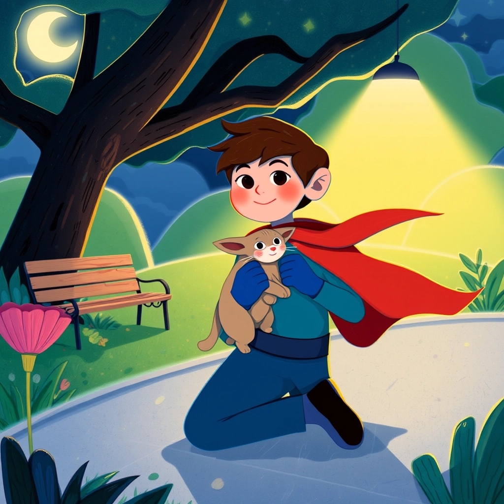 [Noah](9FDRCXRD) zoomed out of his room, his cape fluttering behind him. Using his super-speed, he raced down the quiet street under the twinkling stars.