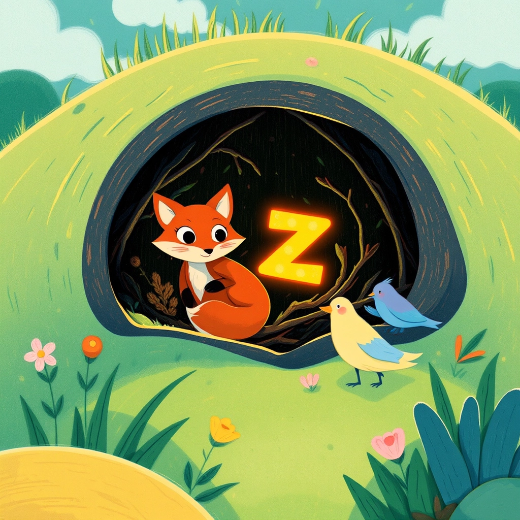 They climbed a hill and found the letter 'Z' sleeping inside a friendly fox's den!