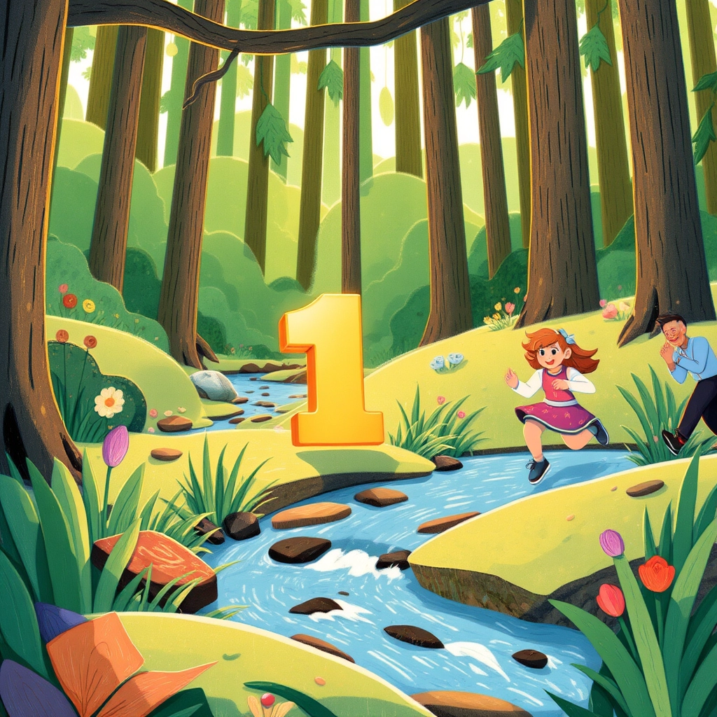 Next, they found the number 1 bouncing near a bubbling creek like a playful frog.