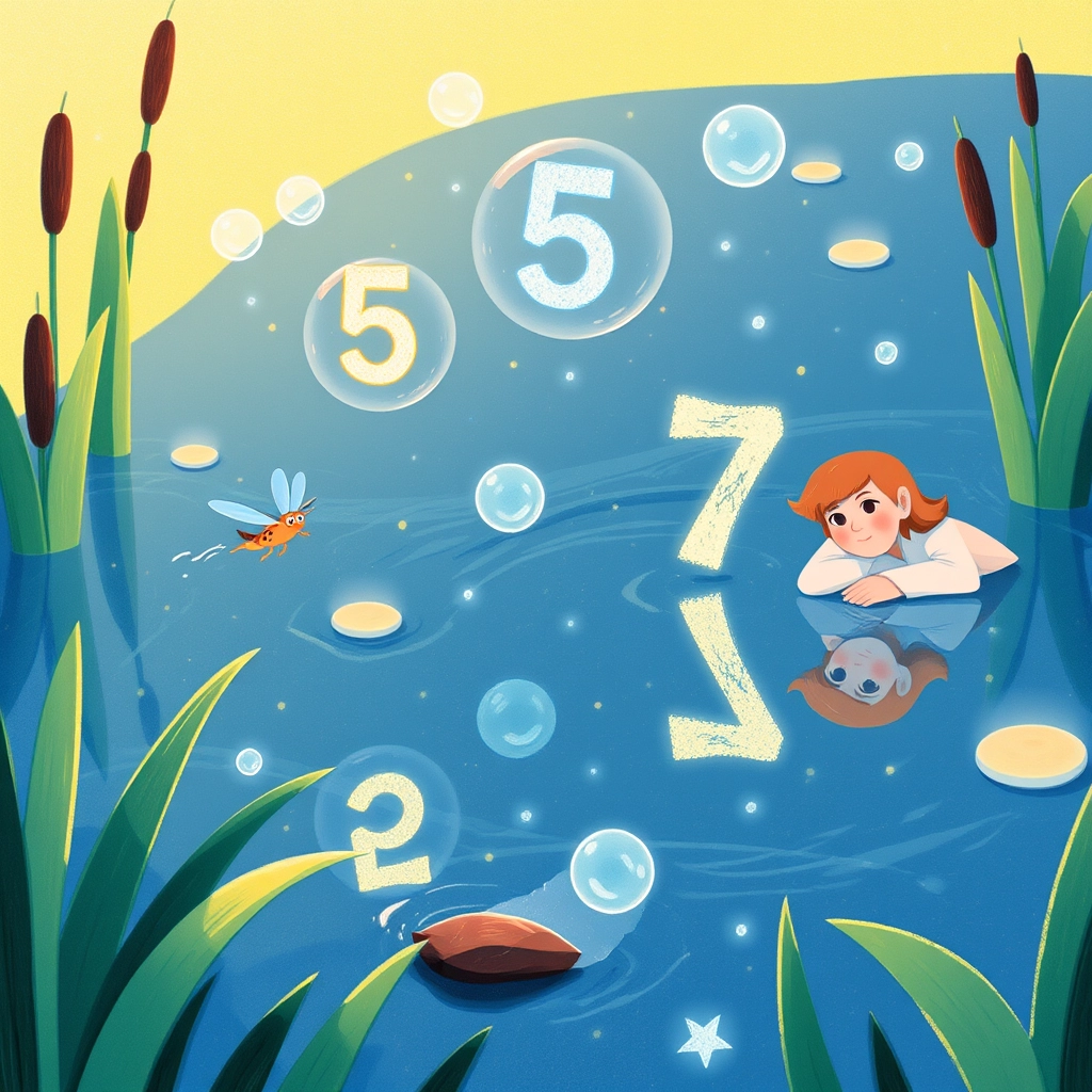 'Look! The numbers 5, 6, and 7 are floating like bubbles over the pond!' Polly shouted excitedly.