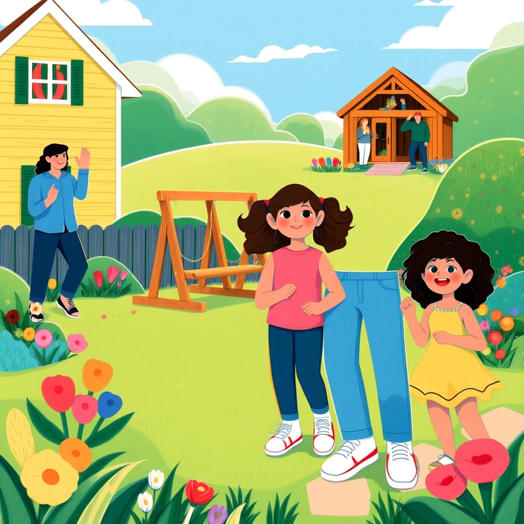 One sunny morning, [Olivia](FKVSNGH5) and her little sister, [Simone](ZJQLBR6G), decided to go on a magical adventure in their backyard. Their mommy and daddy smiled as they waved goodbye.