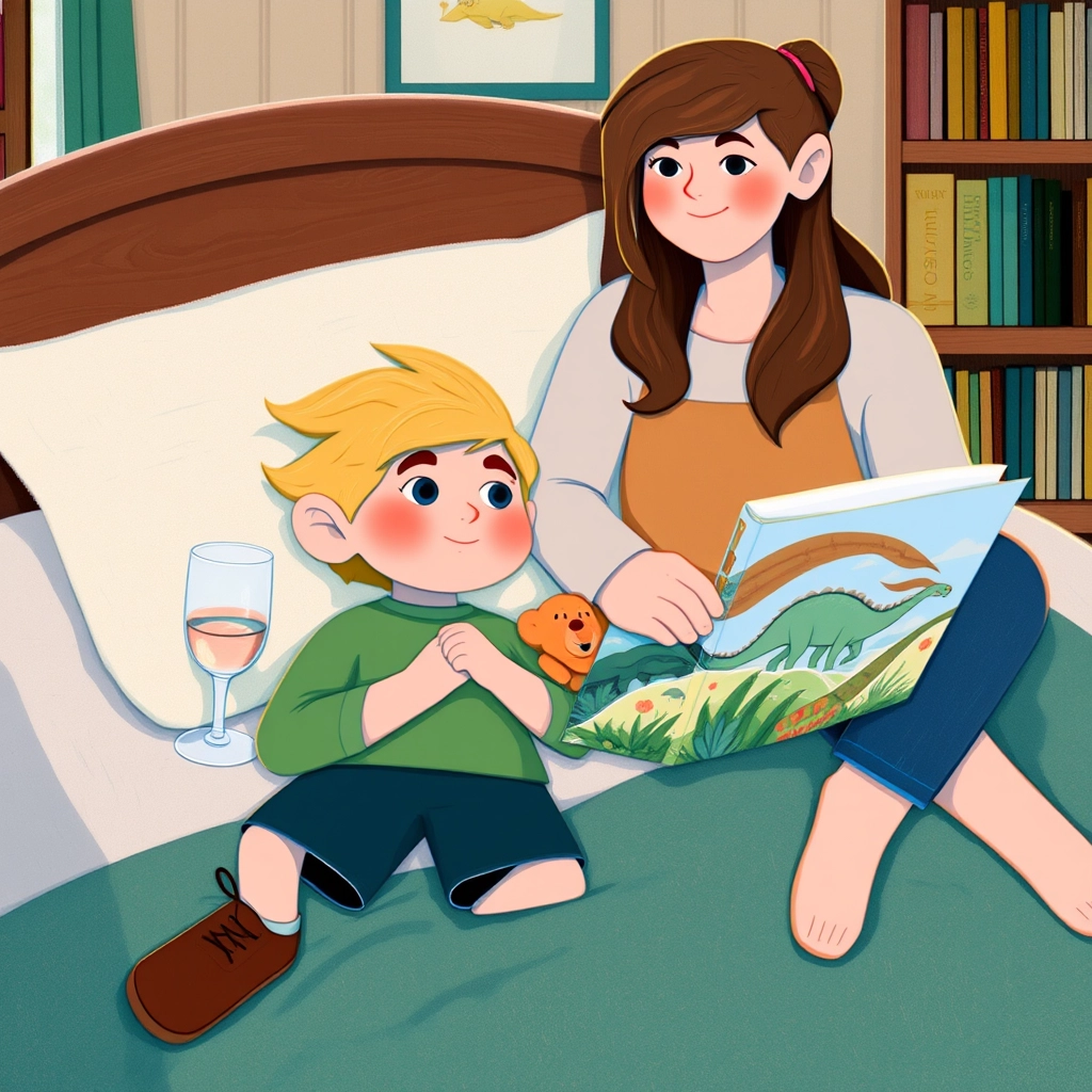 Through the day, [Otto](Q7TBF7SL) drank lots of water and slept. [Mum](C9JHN56X) would sit by his side, stroking his golden hair and reading him his favorite stories about dinosaurs.