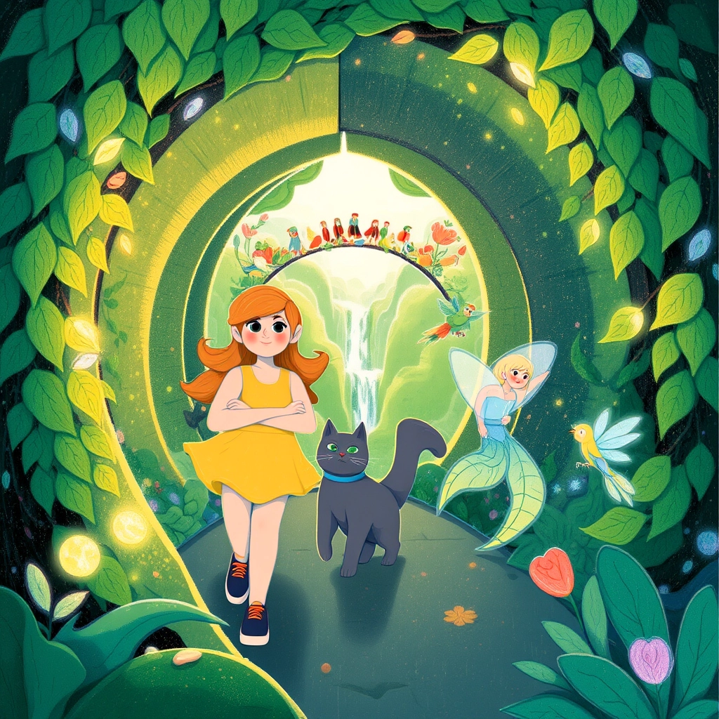 [Paige](NRP32SSV) and her friends followed [Ruby](P3FQN6R6)’s directions, climbing through tunnels of shimmering ivy and across bridges made of colorful leaves.