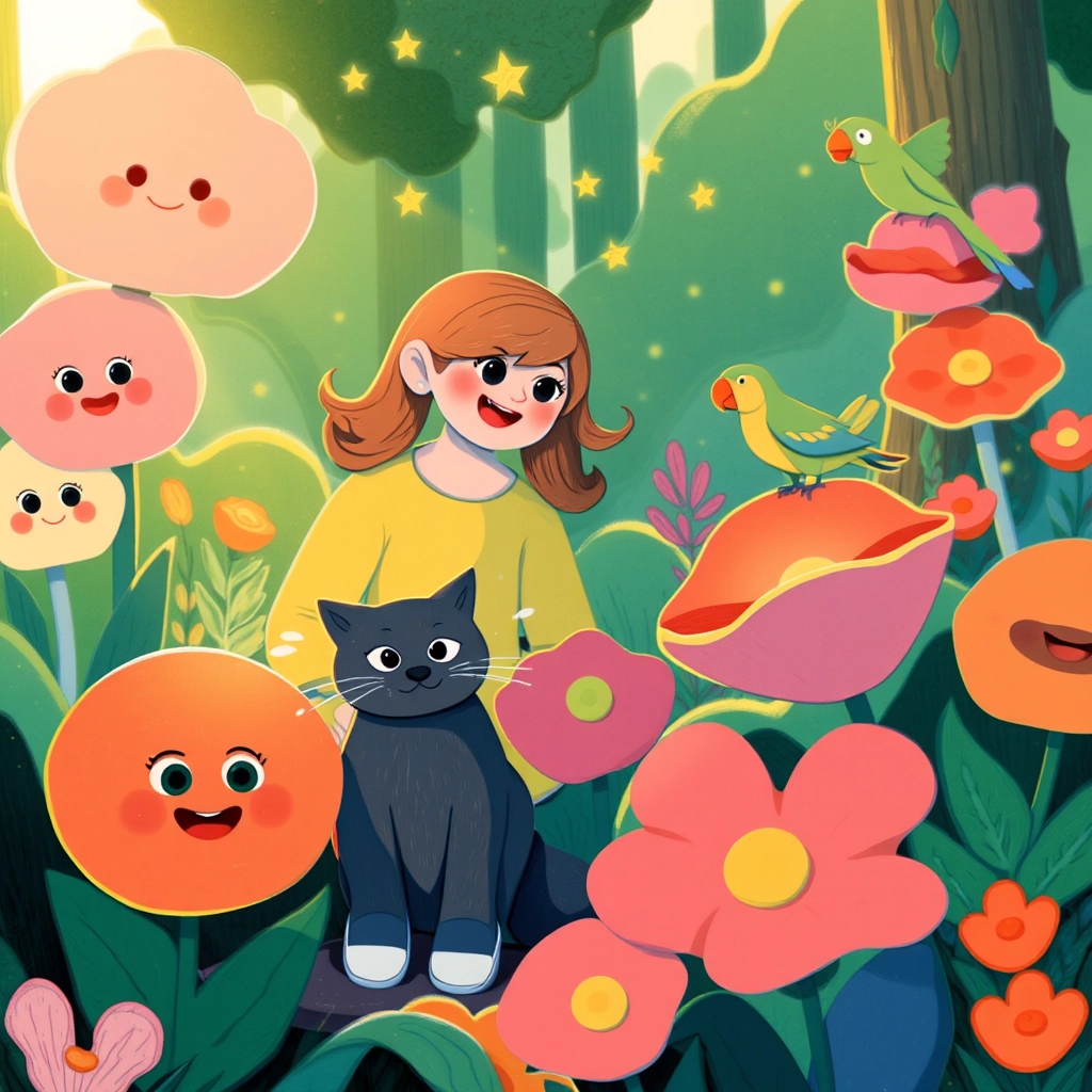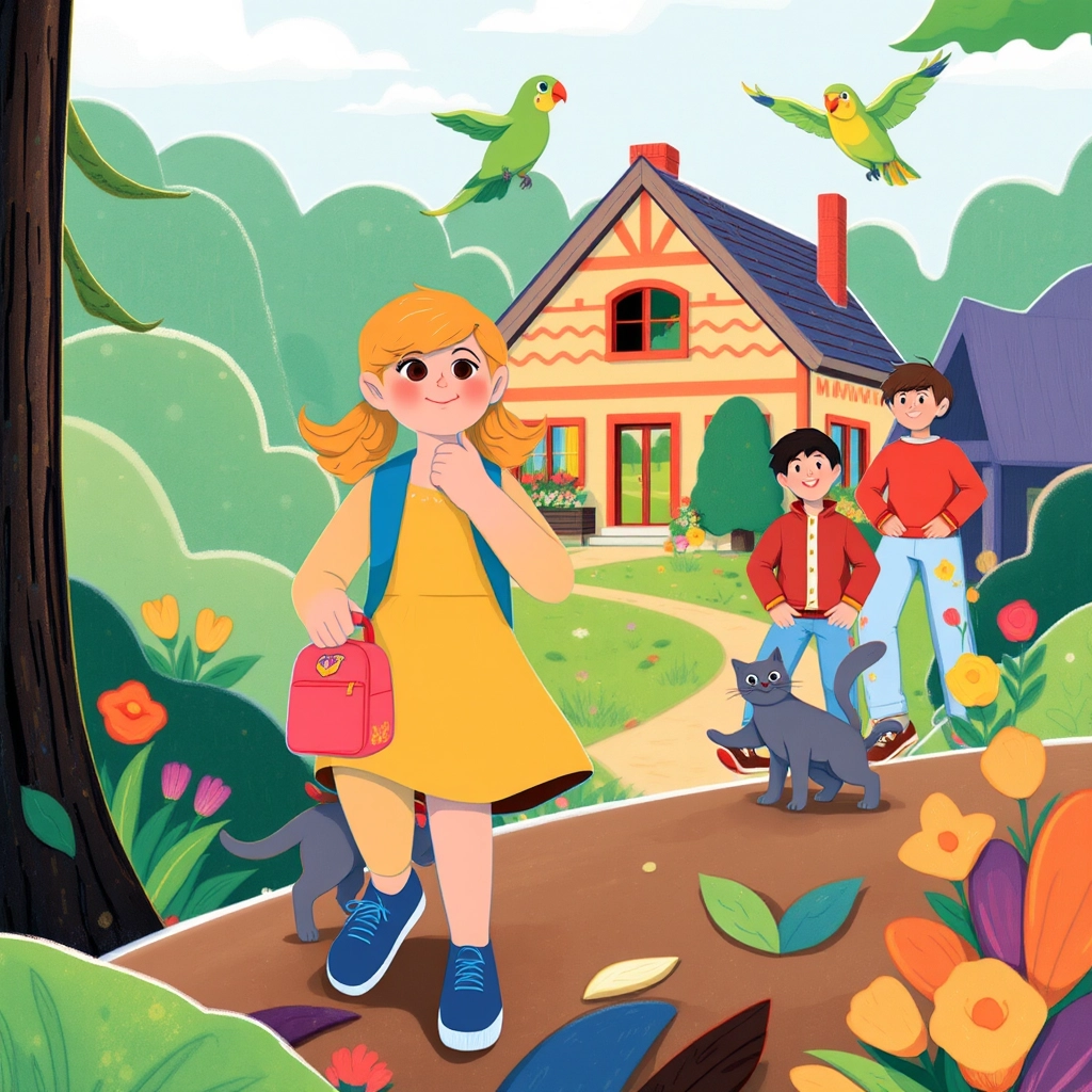 One sunny morning, [Paige](NRP32SSV) decided to venture into the woods near her house. She waved goodbye to Mommy, Daddy, and [Liam](9Z4PZH79) as her best friends, [Mr. Whiskers](FCMSFWSB) the cat and [Ollie](3LTC93HS) the parrot, followed her.