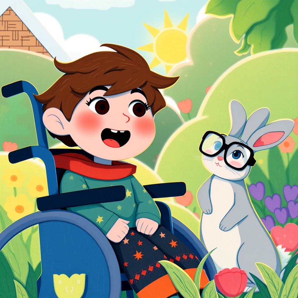 Suddenly, [Peter](YKHGCBSG) heard a soft, whisper-like voice. 'Hello there, [Peter](YKHGCBSG)!' He looked around, surprised. Sitting on a patch of clover was a tiny rabbit wearing shiny round glasses. 'My name is [Oliver](S5ZV4ZKB)! I talk, you see, and today we need your voice for a little adventure,' said the rabbit with a twitch of his nose.