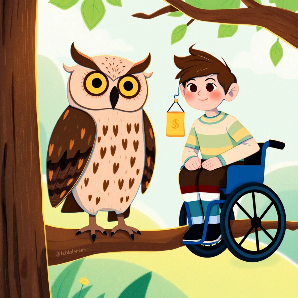 Just then, a loud 'hoo-hoo' sounded from above. [Peter](YKHGCBSG) looked up to see an owl with big golden eyes perched on a branch, staring curiously at him. 'We all like you, [Peter](YKHGCBSG)!' hooted the owl.