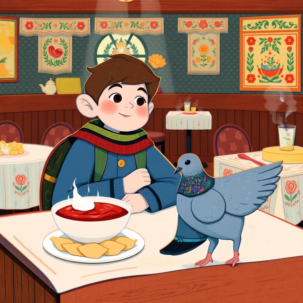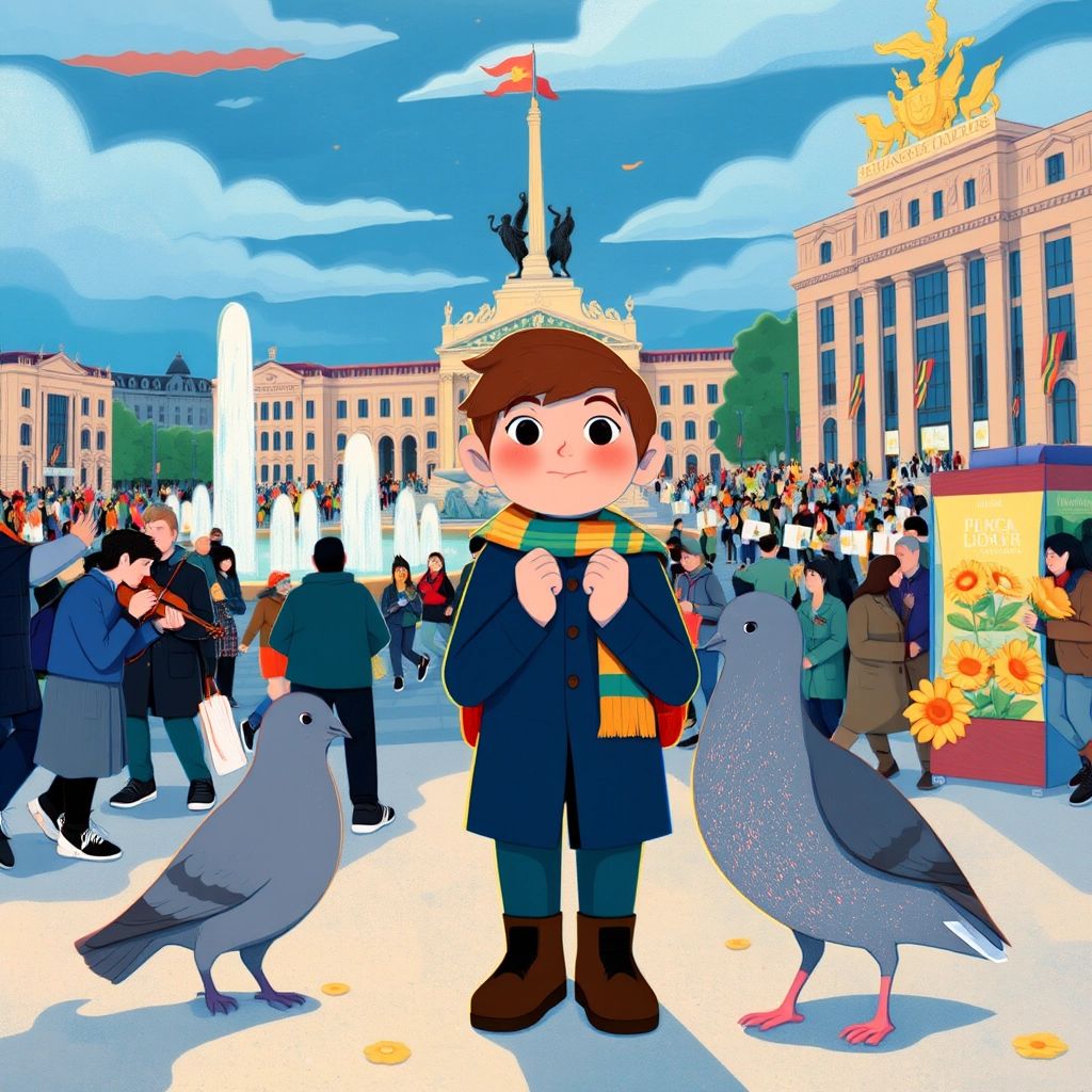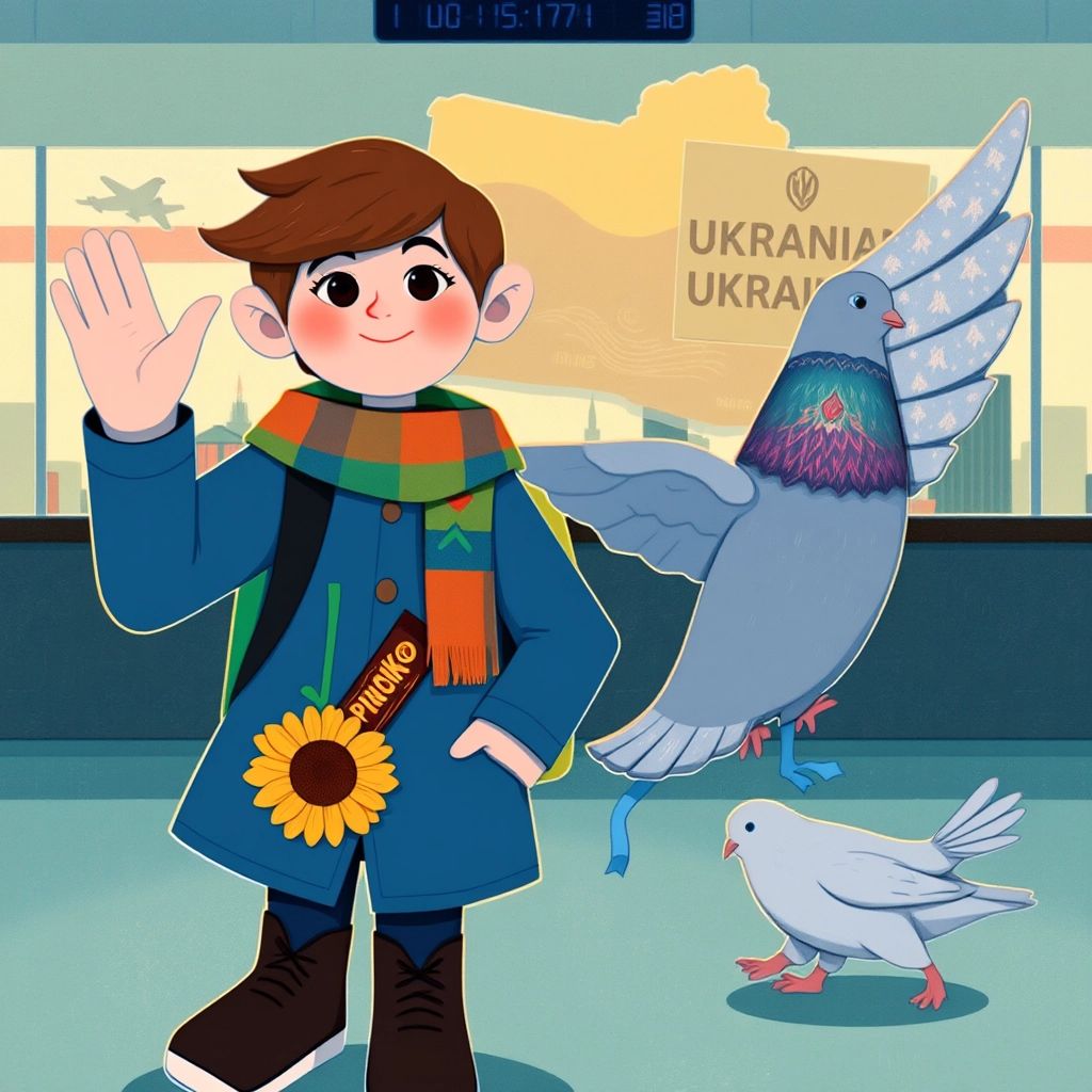 At Saint Sophia's Cathedral, [Philip](PQBNQZ74) met a lively pigeon named [Petro](GBZ33YHP) who offered to be his guide. 'Welcome, [Philip](PQBNQZ74)! Let me show you everything Ukraine has to offer!' [Petro](GBZ33YHP) cooed.