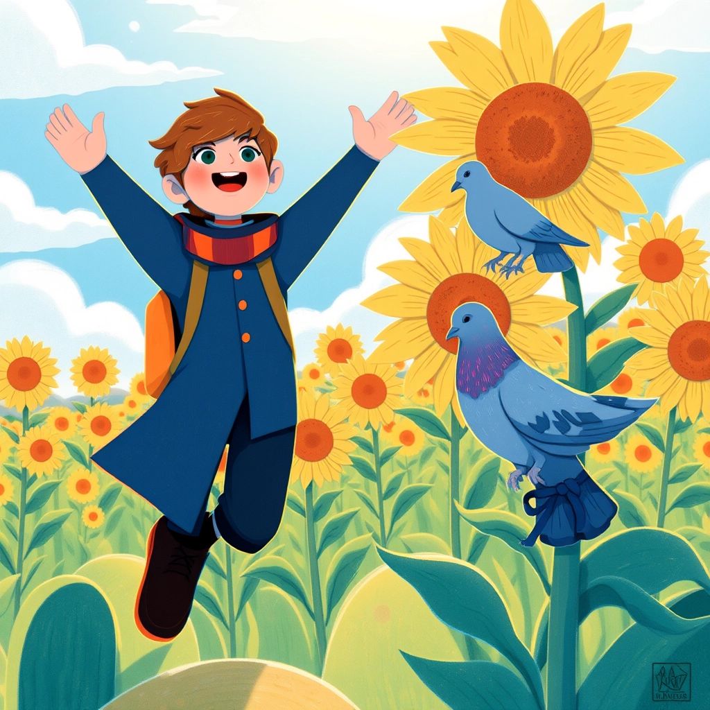 [Petro](GBZ33YHP) flew [Philip](PQBNQZ74) to a sunflower field. 'Ukraine is known for its sunflowers,' [Petro](GBZ33YHP) said proudly. [Philip](PQBNQZ74) twirled through the tall, cheerful yellow flowers.