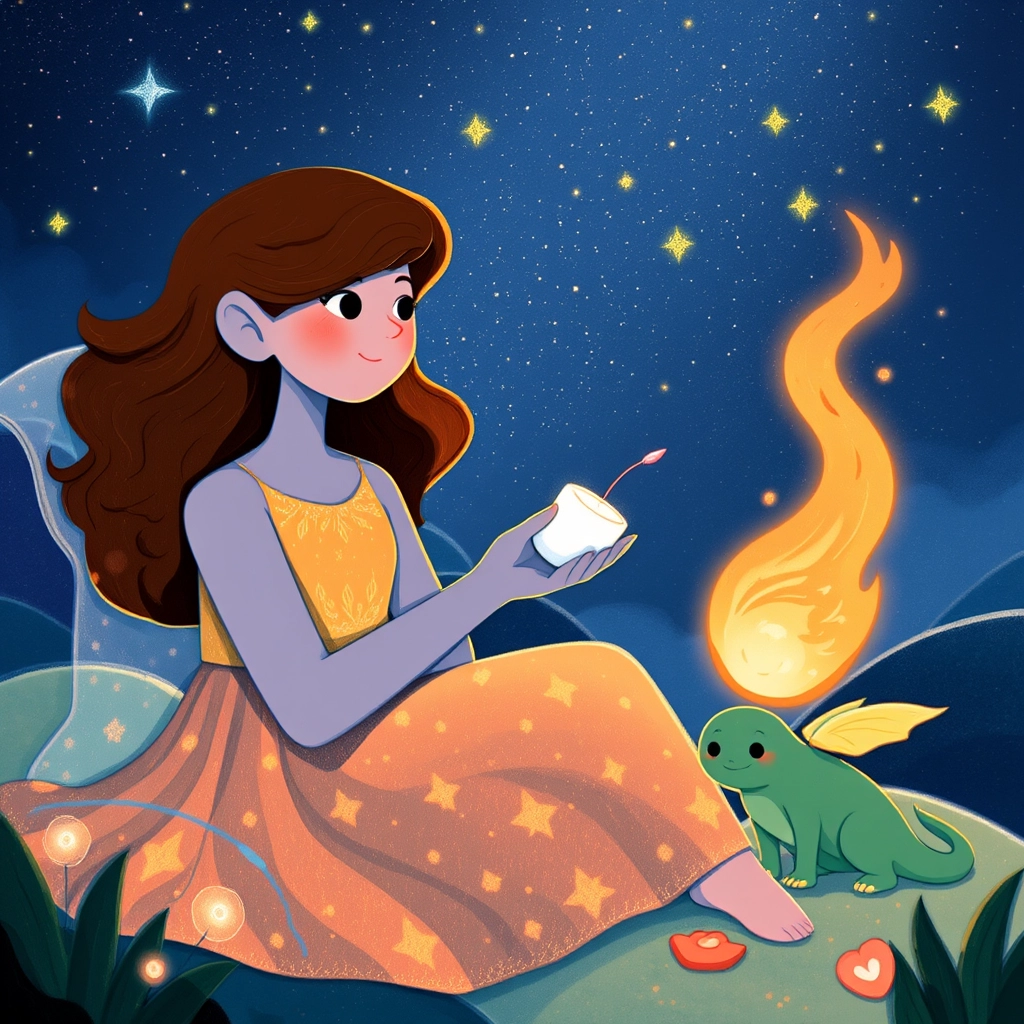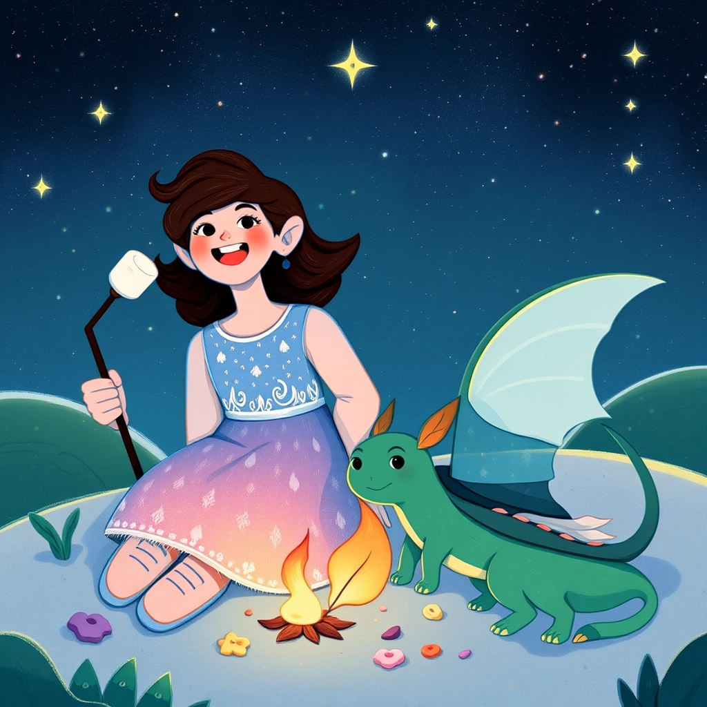 From that day on, [Pip](LT3L7RJ9) stopped being scared of fire. He didn’t need to roar giant flames; his cozy fireballs were perfect just the way they were. [Mila](9K4T33RS) and [Pip](LT3L7RJ9) became even closer friends and would often camp under the stars, roasting marshmallows and sharing their own kind of magic.