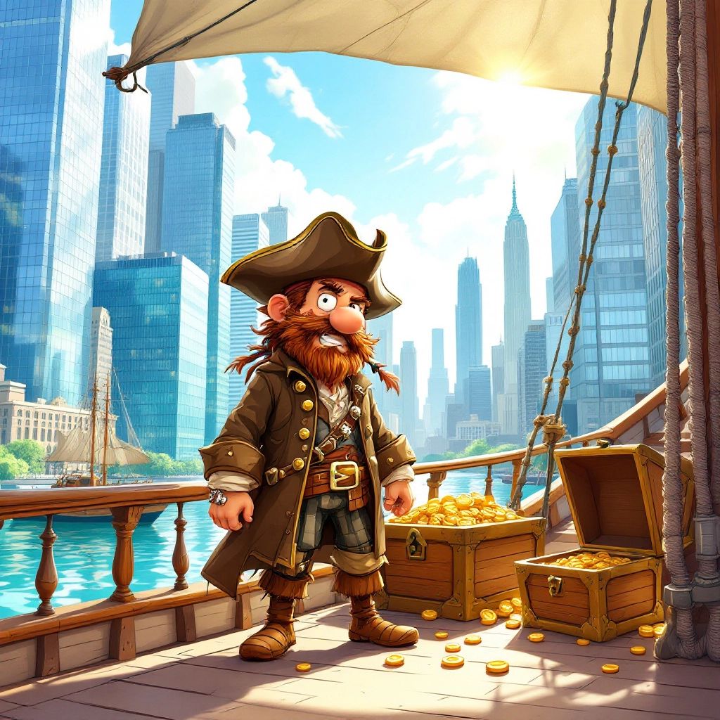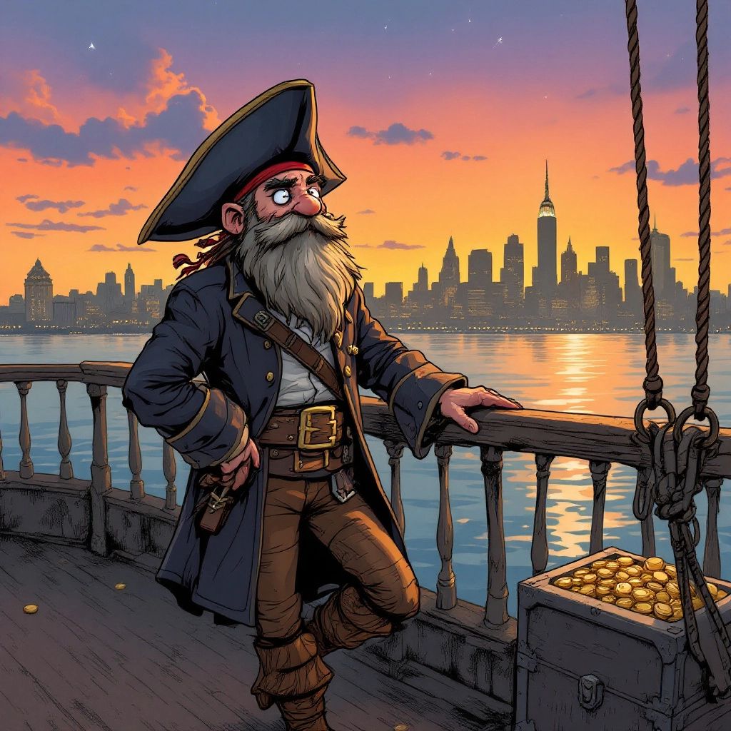 As the sun dipped below the horizon, Pete knew he'd return to Manhattan's marvels. Until then, he'd sail the seas with tales of skyscrapers and digital treasures.