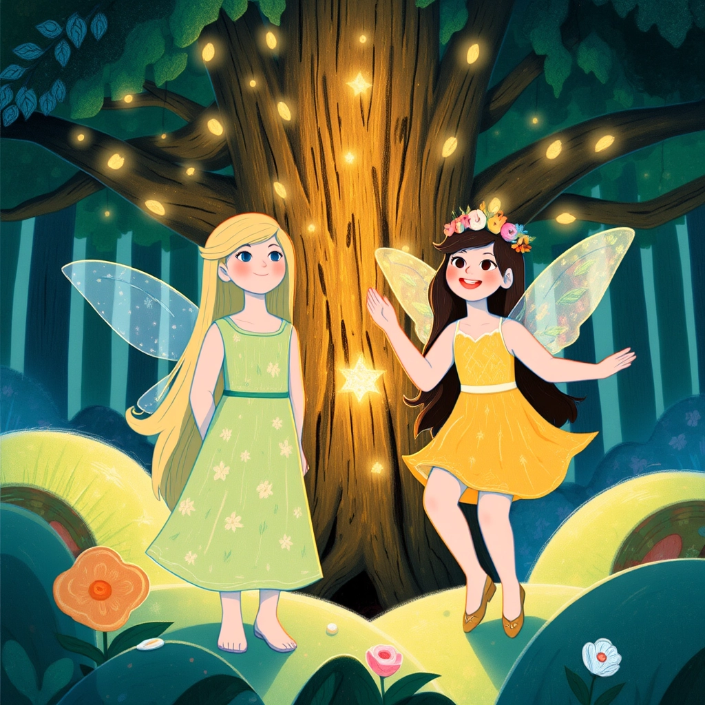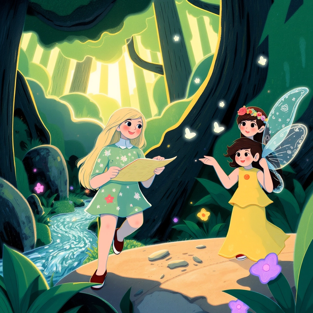 Excited by the idea, the two friends set off on an adventure. They crossed sparkling streams, climbed over tangled roots, and followed a trail of shimmering butterfly dust.