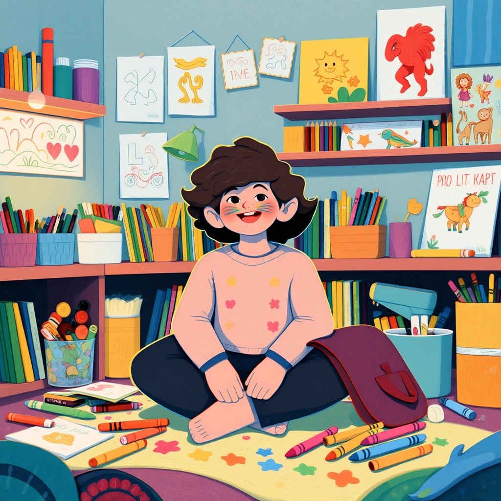After breakfast, Rozi reminded Popo to pack her school bag, but Popo got distracted by her art supplies. One minute she was packing, and the next, she was painting herself a rainbow mustache with markers! ‘I’m an artist!’ she declared.