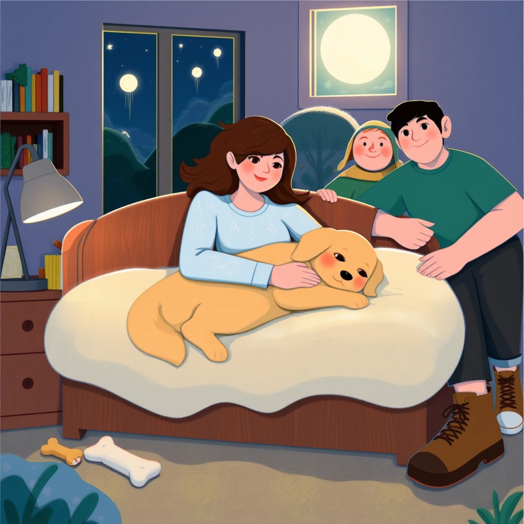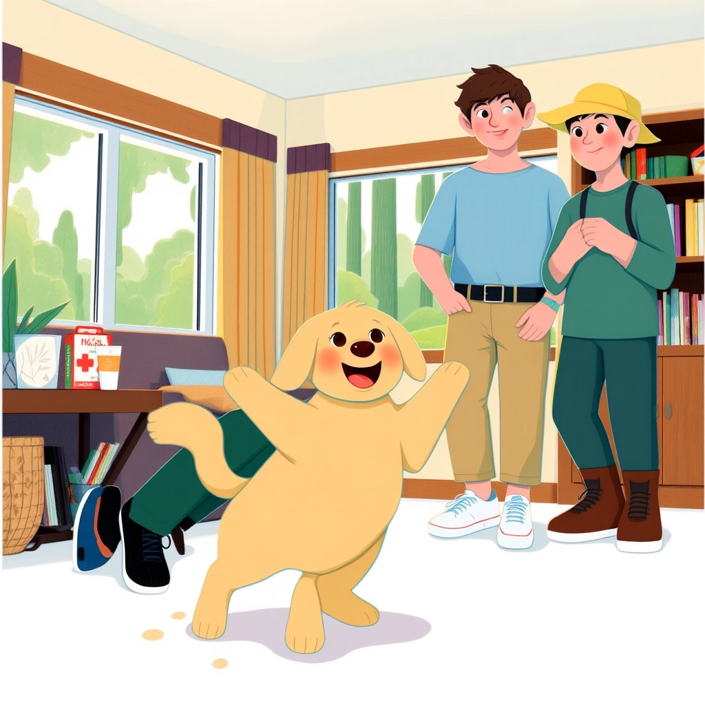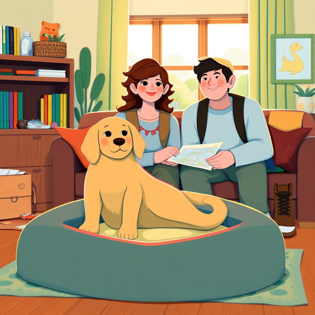 [Poppy](4YQS732B) was a cheerful little golden retriever who loved to explore the world with her mum and dad. One sunny morning, she woke up to find her parents packing for a new adventure.