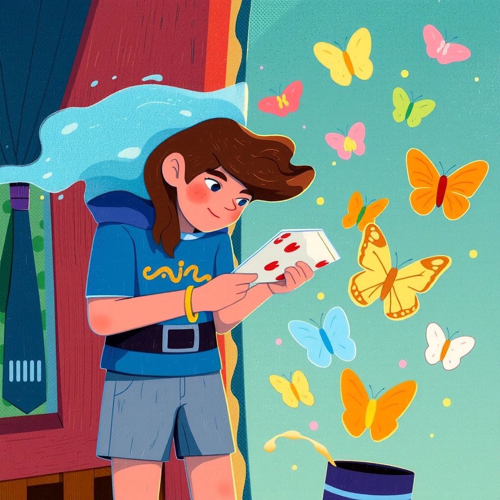 In the next tent, a magician performed with a deck of cards that danced by themselves. [Pramod](CM2WJDQB) watched wide-eyed as each card turned into a fluttering butterfly and floated away.