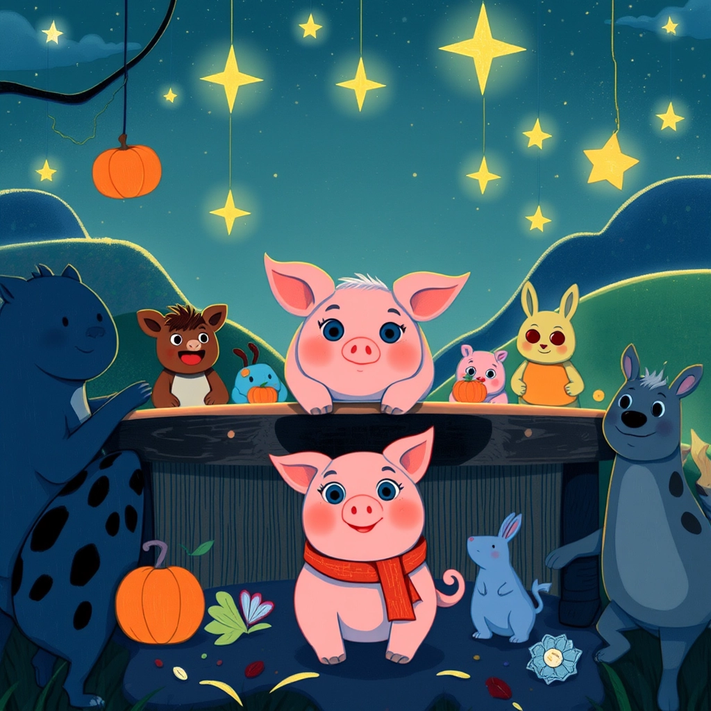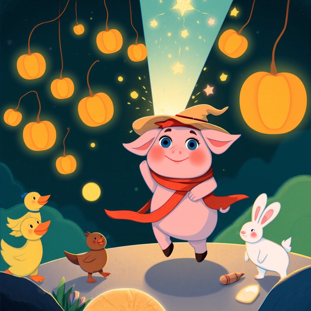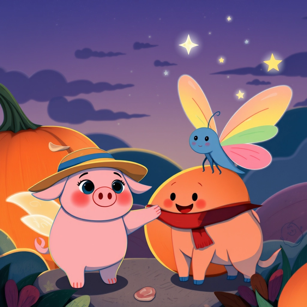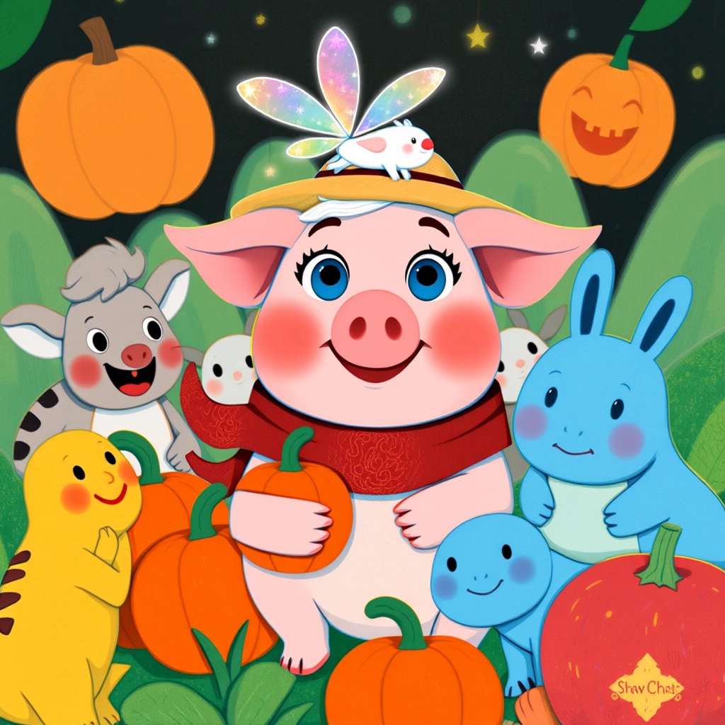 [Prascho](M7BRCX9N) thought and thought. Then he had an idea! "I wish for a pumpkin feast that all the animals on the farm can enjoy together!" he declared.
