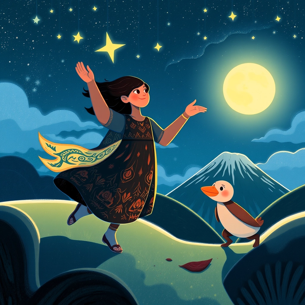 Grateful and overjoyed, [Pōtiki](FMNWGYB3) thanked Hinereikura. Together, they danced under the stars, celebrating friendship, courage, and the wonders of their journey.