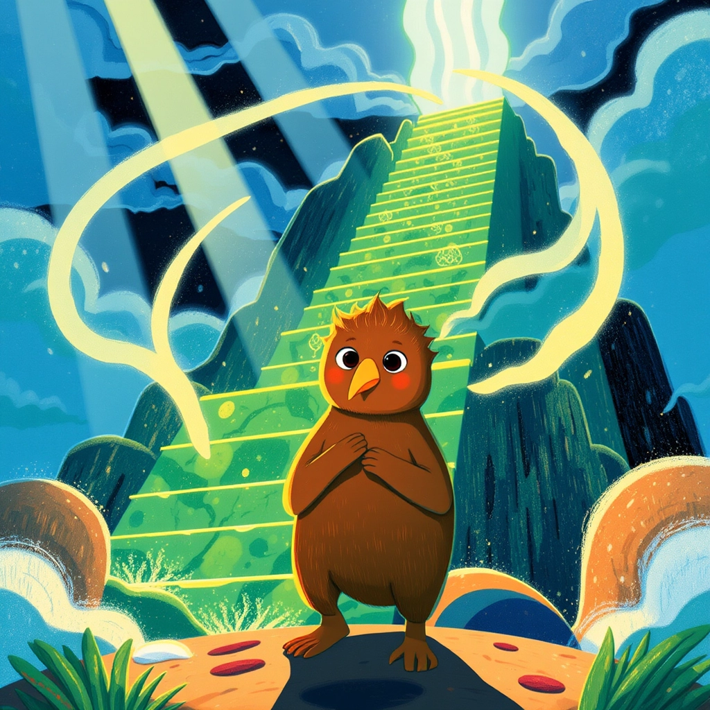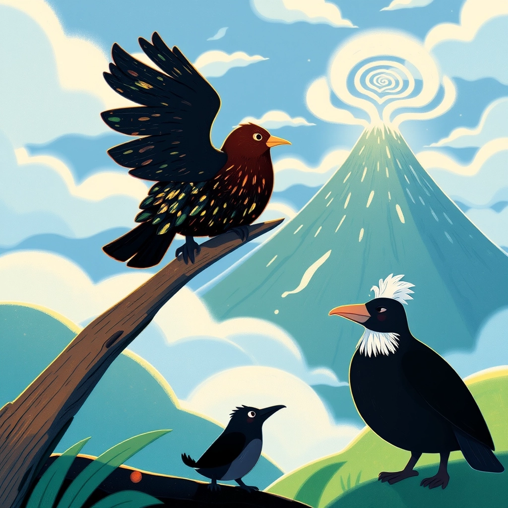 At the peak, they found the lost feather necklace tangled among vines and guarded by two friendly kea birds who loved riddles.