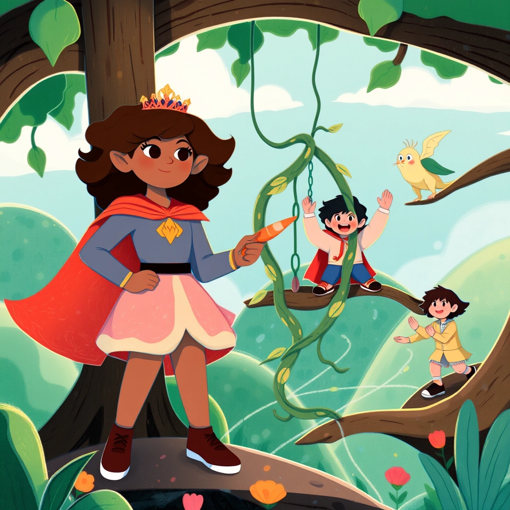 [Princess Justice](BNL9VZZJ), fearless and clever, decided to save her siblings. She donned her superhero cape—a bright red one she had sewn herself—and dashed to the royal library. She had a plan!