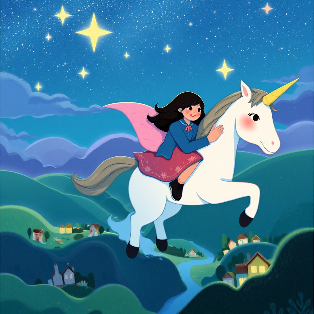 [Prisha](NCVFJCVW) was a curious and adventurous eight-year-old who adored unicorns. Her room was full of unicorn posters, plushies, and even a glowing unicorn night light. But deep in her heart, she dreamed of seeing a real unicorn one day.