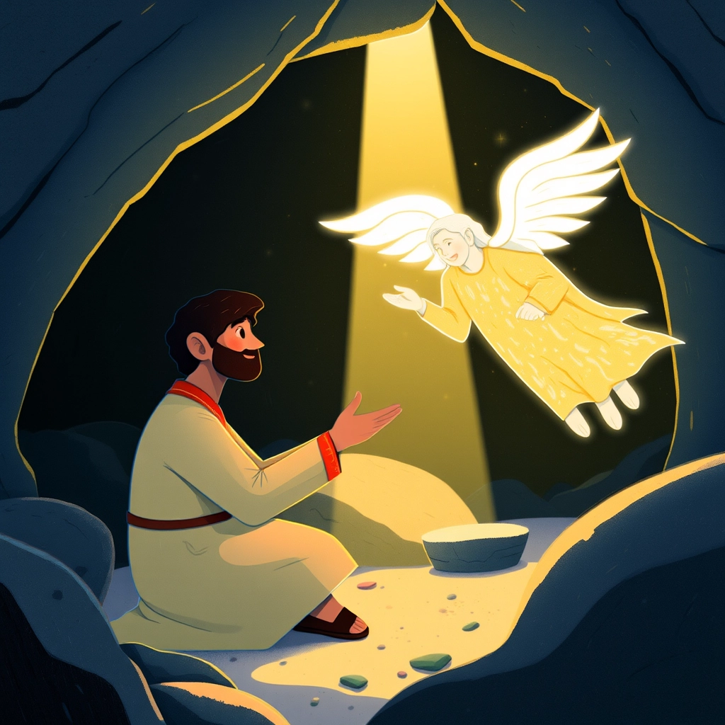 One day, while meditating in a quiet cave on a mountain called Hira, [Muhammad](Z5VFVC64) received a special message from the angel Jibreel (Gabriel). He was chosen by Allah to be a messenger of peace and goodness.