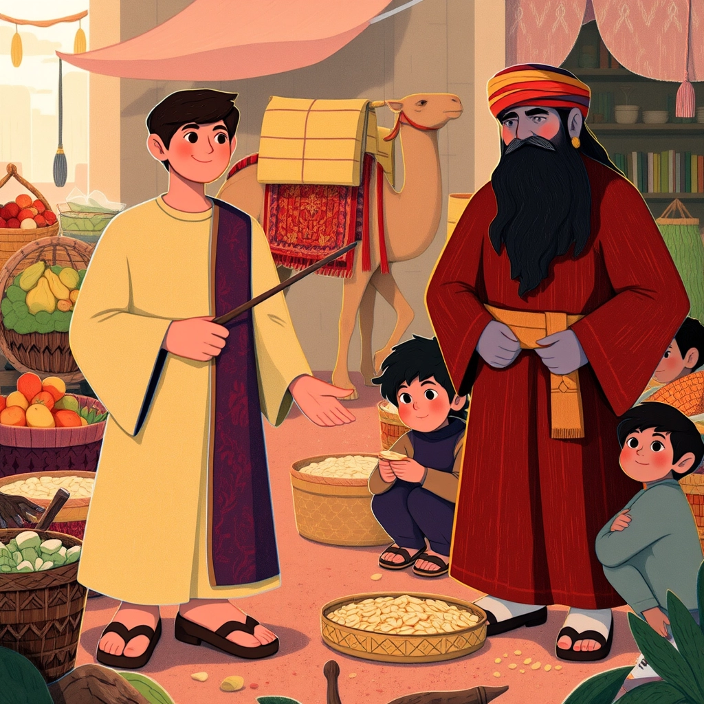[Muhammad](Z5VFVC64) also taught about sharing and fairness. When a rich merchant brought food to the market, [Muhammad](Z5VFVC64) asked him to give some to the hungry people who couldn’t afford it.