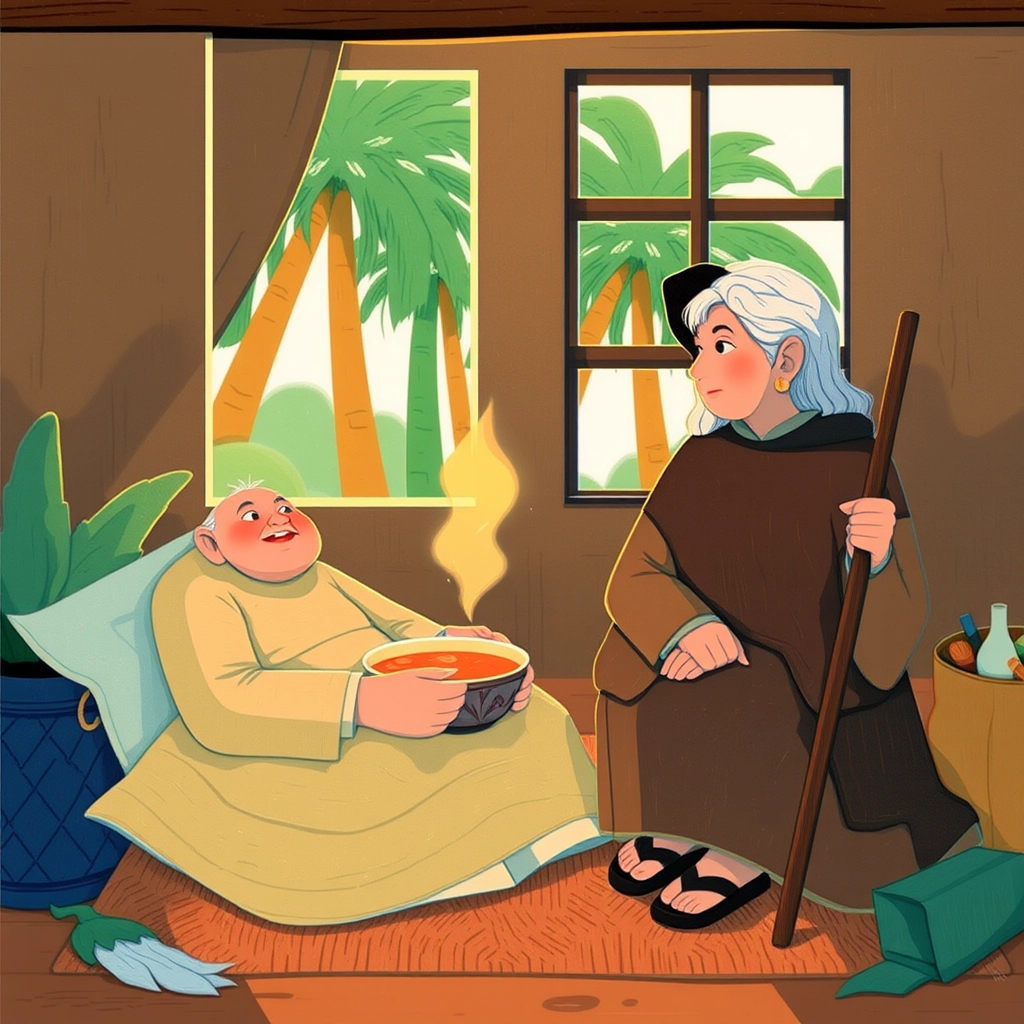 One day, an elderly woman, who didn't like [Muhammad](Z5VFVC64) at first, threw rubbish in his path. But when she fell sick, [Muhammad](Z5VFVC64) visited her to bring her food and cheer her up. She was so touched by his kindness!